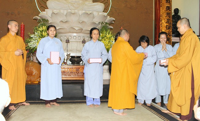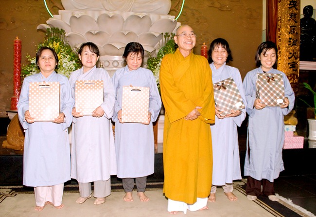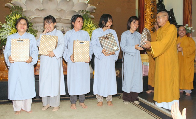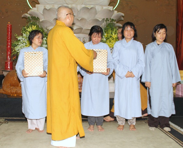 Sau cùng, BTC đã trao những phần quà cho các thiền sinh đạt điểm cao, cho thiền sinh đã gắn bó với các khóa tu thật bền bỉ, và cho phật tử đã tận tâm tận lực đóng góp cho khóa tu. Đồng thời, mỗi thiền sinh cũng nhận lãnh một cuốn lịch, một bằng công đức và một tấm thiệp chúc xuân với lòng biết ơn sâu sắc./.