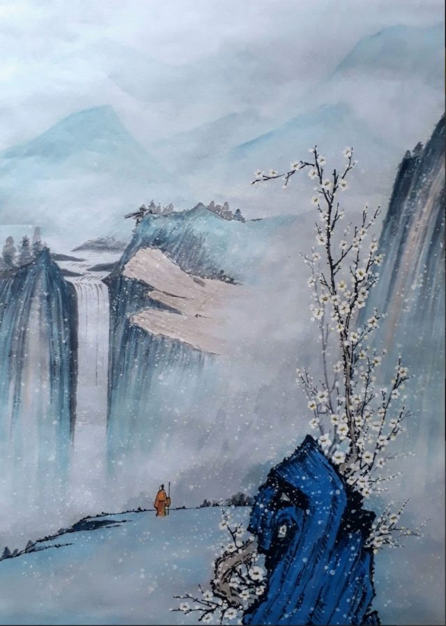 – Các con hỡi! Giọng tổ sư thoảng như tiếng gió lướt qua sơn khê hồ hải – Những huynh trưởng của các con thành tài, xin xuống núi, thế là hơn mười năm rồi, không có ai trở lại. Thế là đã như ông lão trong bức tranh kia, suốt bao ngày lặn lội, công phu tìm kiếm trên non cao tuyết giá, lúc về làng, qua cầu, ngoảnh nhìn lại – thì nhành mai tuyệt đẹp chỉ còn là nhánh củi khô!
