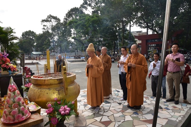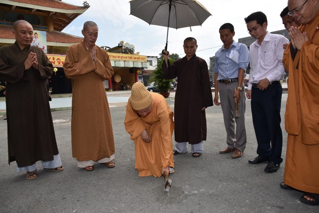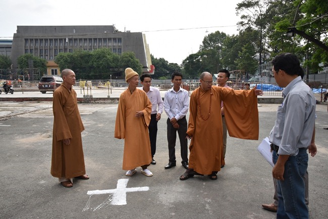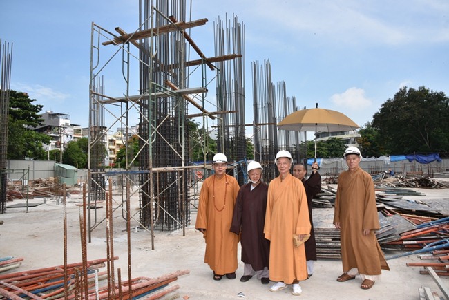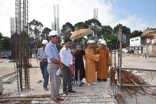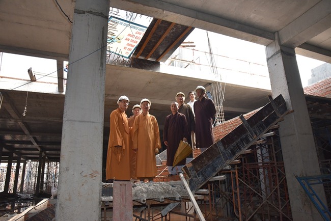 Sau đó, chư Tôn đức tiếp tục đi khảo sát công trình tầng hầm Việt Nam Quốc Tự, dự kiến trong tuần này tầng hầm công trình sẽ được hoàn thành.