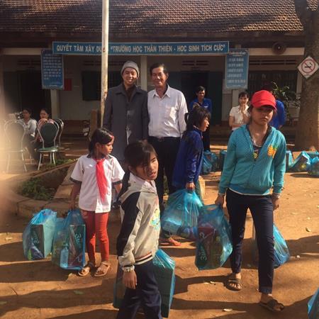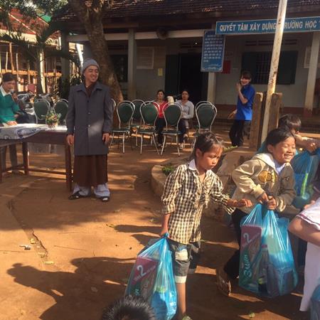 Chiều ngày 25/1/2016, ĐĐ. Thích Minh Đăng, trưởng ban trị sự GHPGVN huyện Cư M’gar cùng các nhà hảo tâm đã đến thăm và tặng 100 phần quà cho các em học sinh trường tiểu học Trưng Vương xã EA H’ Đinh , cùng ngày đoàn cũng đã đến thăm hỏi và tặng quà tết cho 7 hộ gia đình có hoàn cảnh khó khăn bệnh tật khu vực quanh chùa Hoa Nghiêm giúp bà con có thêm điều kiện vui đón tết cổ truyền của dân tộc .