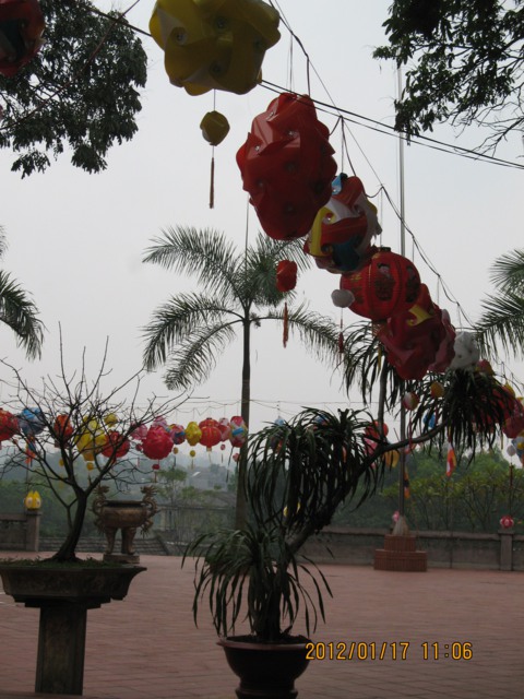 Vào những ngày cuối năm, dù cái rét cuối đông vẫn còn se sắt qua từng cơn gió, nhưng đến chùa Huống – Phú Nông ( chùa Nóng) đã thấy sắc xuân bừng dậy khắp. Trong khoảng sân rộng của chùa, bên sắc hồng của cây bích đào là sắc đỏ, tươi rói của hàng trăm chiếc đèn lồng – sản phẩm của bao ngày cẫn mẫn, chăm chỉ của thầy trụ trì và các chú tiểu.