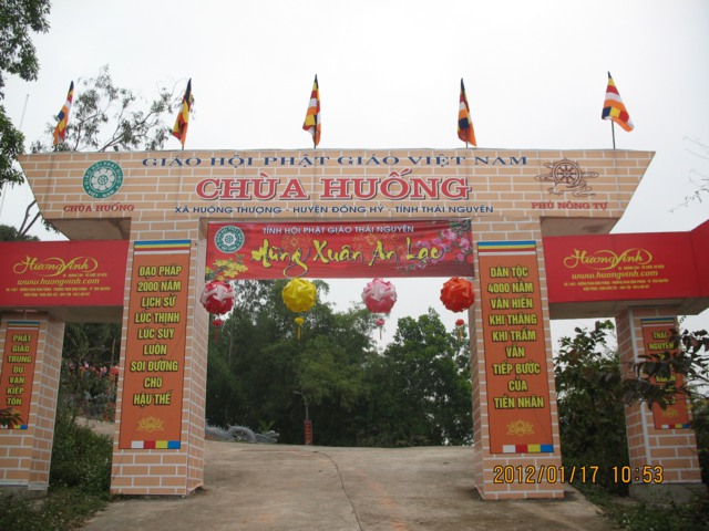 Chùa Huống (chùa Nóng) cách trung tâm thành phố Thái Nguyên chừng 3km. Đi qua cầu treo bắc ngang dòng sông Cầu thơ mộng chừng vài trăm mét là có thể nhìn thấy ngôi chùa tọa lạc trên quả đồi có dáng chim Phượng Hoàng đang sải cánh bay về phía Tây Nam.