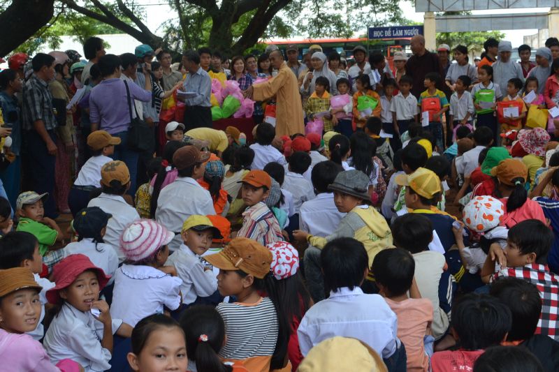 Khởi hành từ 5h sáng ngày 7.7.2012, đoàn phát quà đa số là những thành viên trẻ, nên các bạn rất năng động, sinh hoạt giao lưu trên suốt dọc đường đi. Điểm đến đầu tiên là trường tiểu học Hàm Cường, tiếp theo là trường tiểu học Hàm Hiệp – Hàm Thuận Nam – Bình thuận phát 600 phần quà (bao gồm tập, viết, bánh kẹo, vớ) và 60 suất học bổng khuyến khích học tập. Sau đó hành trình chia sẻ yêu thương lại tiếp tục đến chùa Bình Quang Ni Tự ở phường Bình Hưng (Bình thuận) để phát 200 phần quà và 40 suất học bổng cho học sinh nghèo trong khu vực.