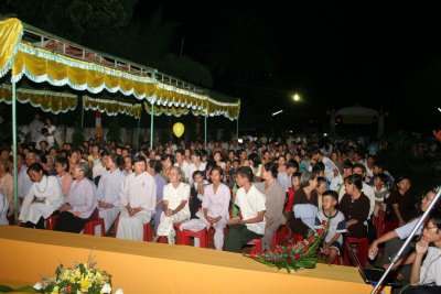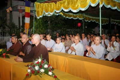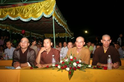 Chư Tăng Ni khắp nơi cùng với bà con Phật tử quanh vùng đã tụ hội về đây đón xem chương tình văn nghệ Vu Lan trước khi tham gia buổi lễ dâng y chính thức vào sáng hôm sau.