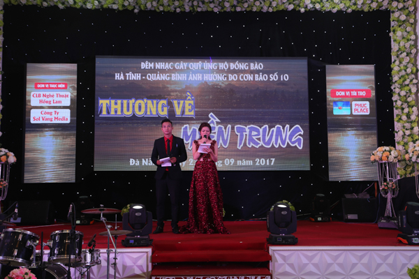 Nhằm chia sẻ những khó khăn hoạn nạn của đồng bào bị thiệt hại do thiên tai gây ra, trên tinh thần tương thân tương ái của dân tộc Việt Nam, tối ngày 27/9/2017, tại Trung tâm hội nghị Phúc Plaza (đường 30/4, Tp Đà Nẵng), CLB nghệ thuật Hồng Lam và Công ty Sol Vàng Media đã tổ chức đêm nhạc gây quỹ từ thiện giúp đỡ đồng bào bị thiệt hại tại xã Kỳ Nam, huyện Kỳ Anh, tỉnh Hà Tĩnh và xã Quảng Đông, huyện Quảng Trạch, tỉnh Quảng Bình.