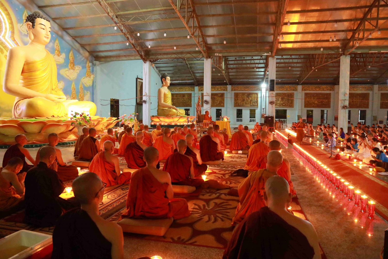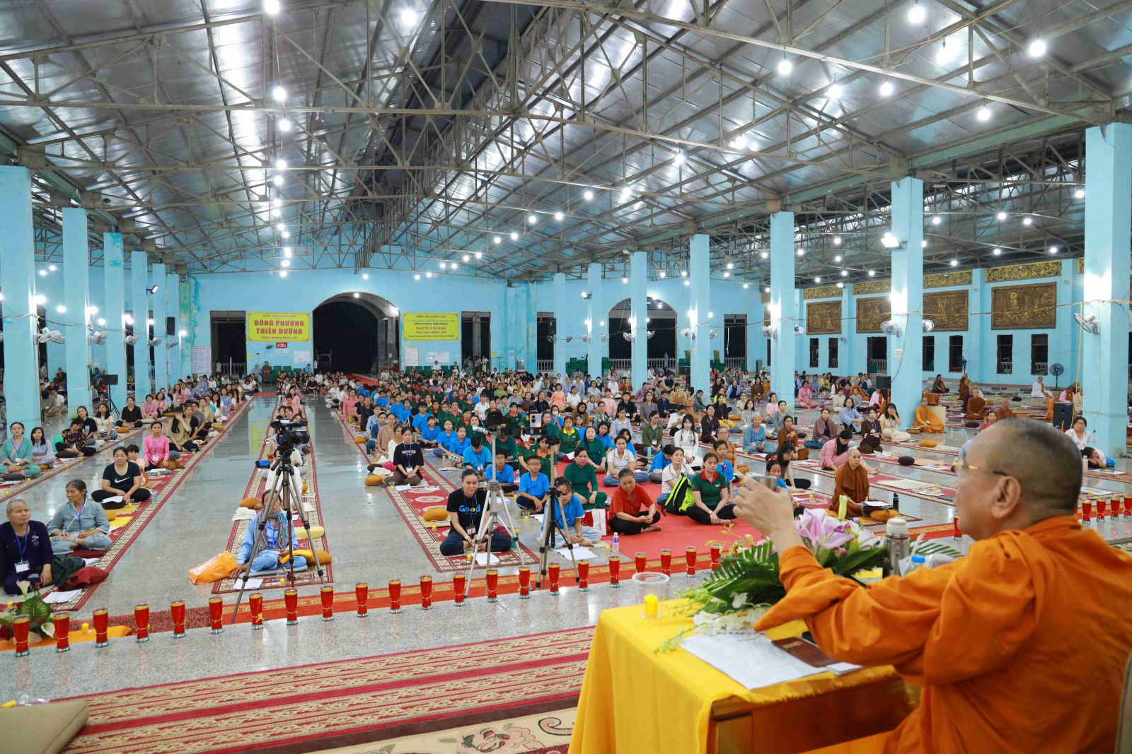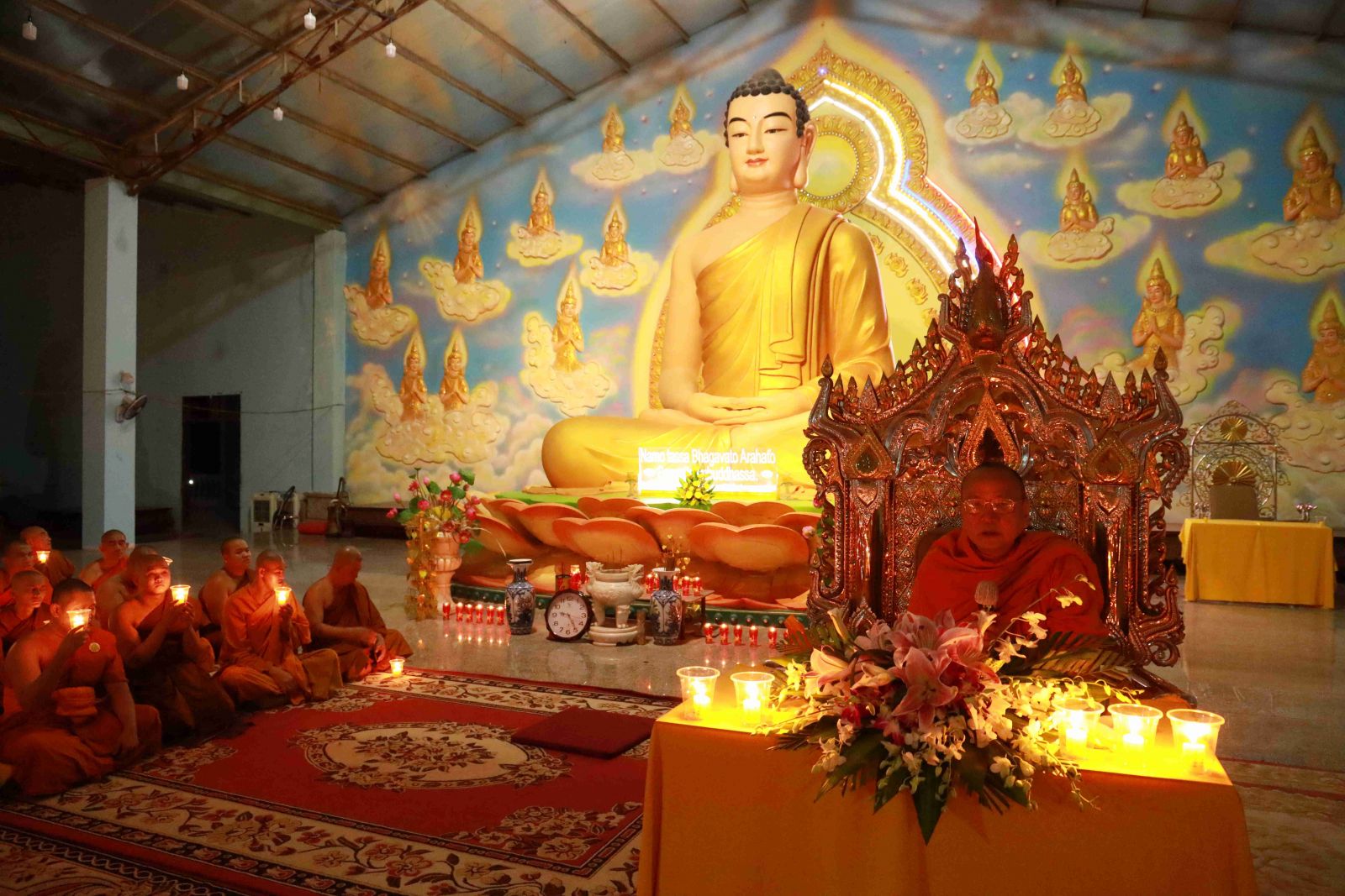 Những ngọn nến này là ngọn nến tâm linh, là ánh sáng Phật pháp soi đường của chúng ta, vì vậy hãy nâng niu ngọn nến của tâm của chính mình trên tay, giữ chánh niệm thường xuyên và luôn luôn. Chia sẻ Pháp thoại trong buổi lễ, Hòa thượng Bửu Chánh, đã có đôi lời chia sẻ với hội chúng về công ơn cù lao của hai đấng sinh thành, Hôm nay tất cả các con trở về khóa tu học thiền vipassana, tại “bệnh viện” Phước Sơn này, nơi thiền sinh học hỏi giáo lý Phật pháp, đạo đức Phật giáo và học trở về với chính mình, với hơi thở ra vào để tự mình khám phá ra chính mình một lối đi riêng, lối đi đến chánh niệm tỉnh giác. “Không dễ gì chúng ta tìm được thời khắc quý giá này, thời khắc mà ai ai tranh thủ nghĩ lễ đi đâu đó, thì chúng ta ở đây, tu học thiền, tự mình tưới tẩm tâm hồn mình bằng giáo pháp” “Cái vui xã hội là nhất thời, nhưng cái sự tu và học thiền là vĩnh cửu, là theo suốt ta khi ta còn thở, nó không mất đi mà sẽ phát triển theo chiều hướng tích cực nếu ta thường xuyên tưới tẩm chăm bón bằng các giờ luyện tập chăm chỉ” Hòa thượng nhấn mạnh.