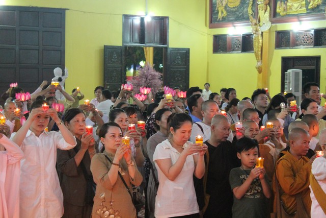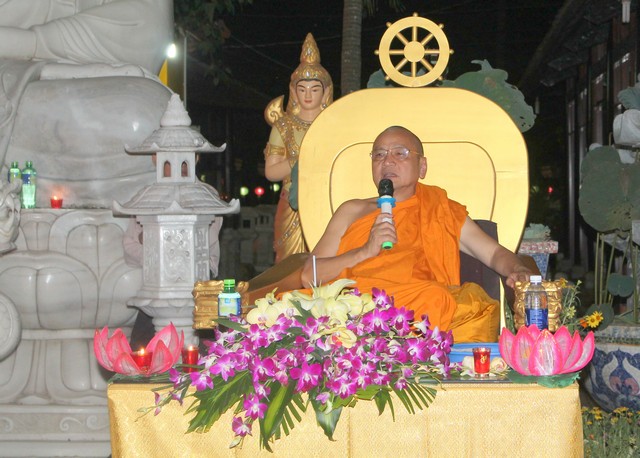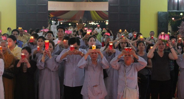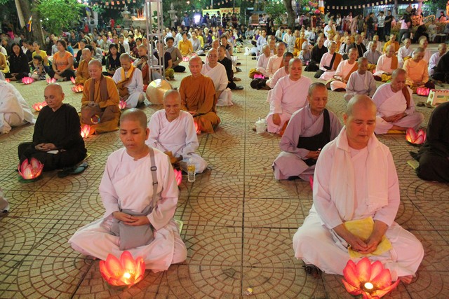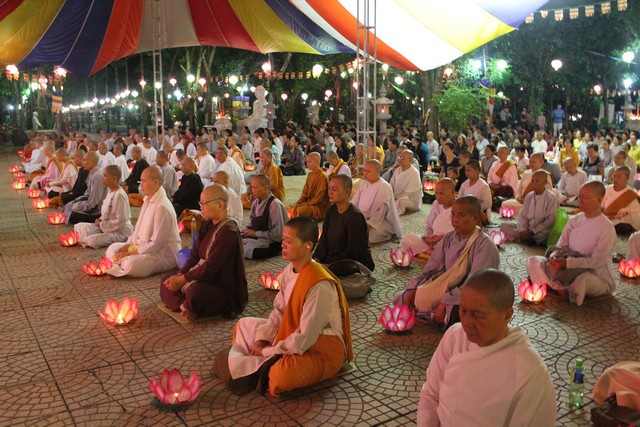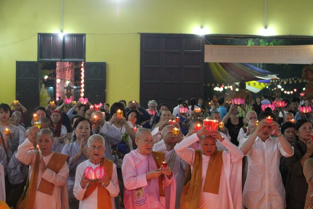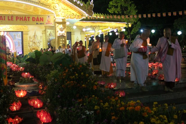 Sau thời lễ bái tam bảo, đại chúng tọa thiền trong mười phút và lắng nghe TT.Thích Bửu Chánh – (viện chủ Thiền viện Phước Sơn thuyết giảng pháp thoại với chủ đề “Vui thay Phật ra đời”. Trước khi cử hành lễ dâng đèn và rước đèn, chư Tăng Ni tụng kinh chúc phúc lành – cầu an đến chư Phật tử đã phát tâm trong sạch cúng dường tịnh tài tịnh vật.