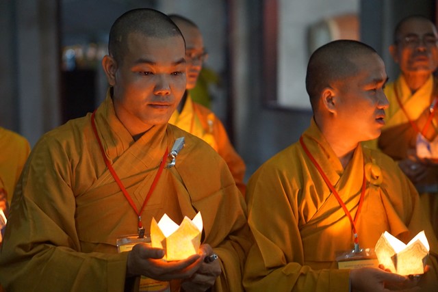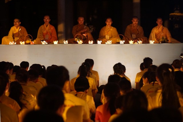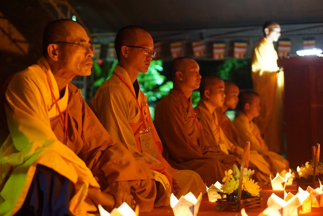 Không khí trang nghiêm lắng động, tiết trời miền núi thiêng liêng như một lời cầu nguyện góp phần cho đêm hội hoa đăng trở nên mầu nhiệm; những ngọn nến được thắp lên từ ánh sáng trí tuệ, dưới sự chứng minh của mười phương chư Phật. Trong hơi thở chánh niệm chư tôn đức trao truyền ánh đuốc tuệ giác đến toàn thể hội chúng.