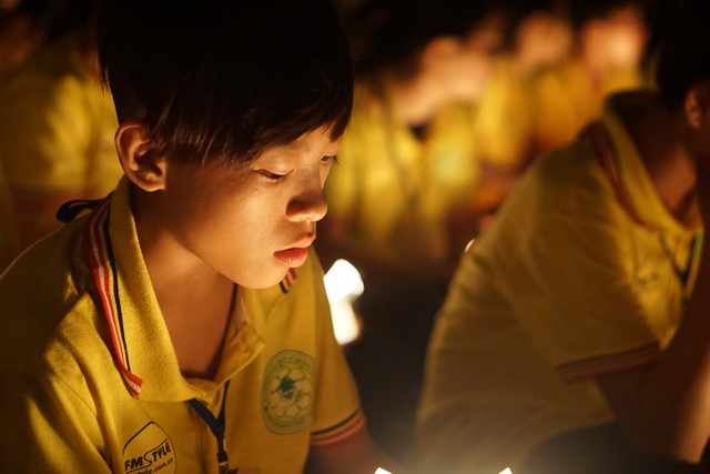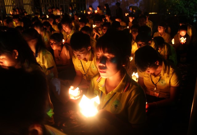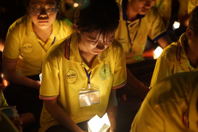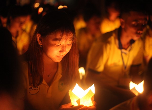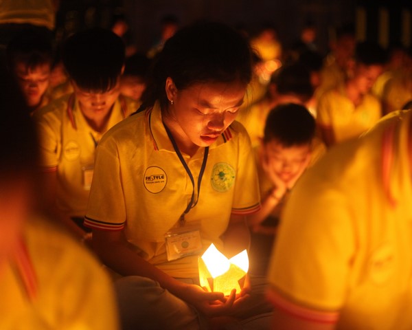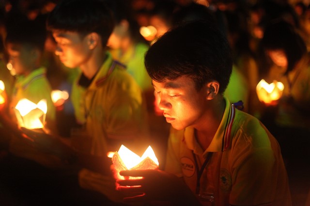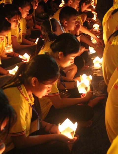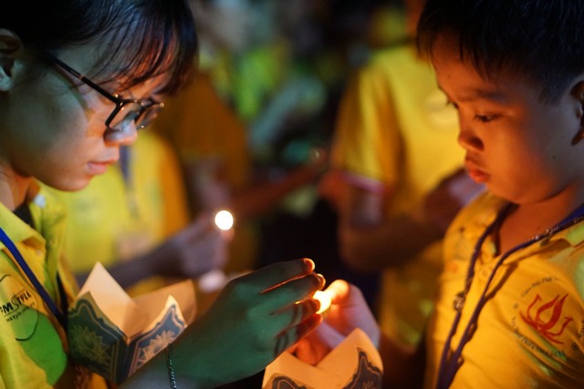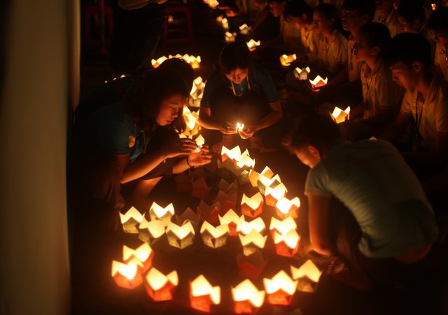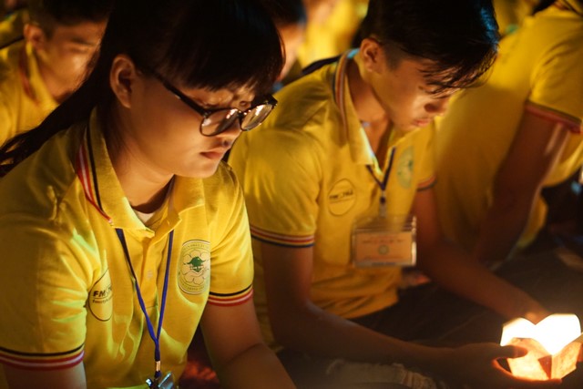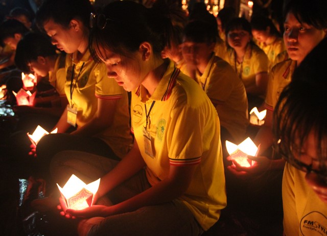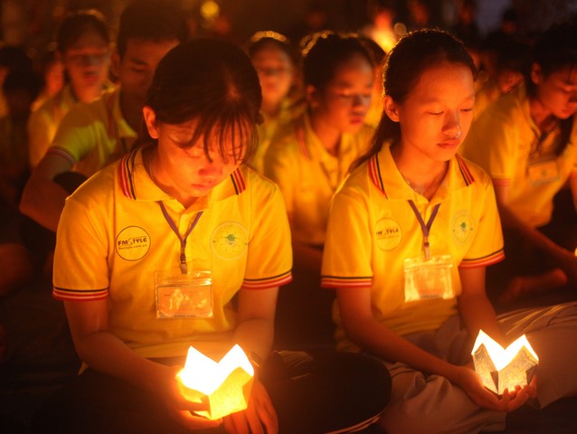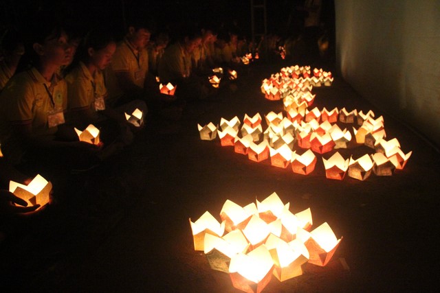 Những ngọn nến bừng cháy xóa tan đi màn đêm u tịch nơi vùng miền núi, tiếp ánh sáng trí tuệ, ánh sáng của sự giác ngộ đến với các bạn trẻ trong khóa tu.