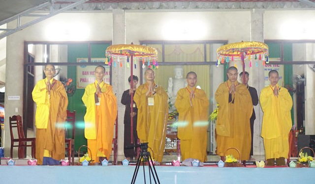 Mở đầu đêm hội hoa đăng ĐĐ.Thích Viên Quán, Phó thư ký BTS -Phó trưởng ban HDPT PG tỉnh đã có lời khai từ cũng như thành kính dâng ngọn nến lên đấng Giác ngộ vô thượng. Lời tác bạch cầu nguyện, cầu cho đất nước thanh bình, vạn dân an lạc; nguyện khóa tu được thành tựu viên mãn, các bạn trẻ được tắm mình trong ánh sáng tuệ giác.