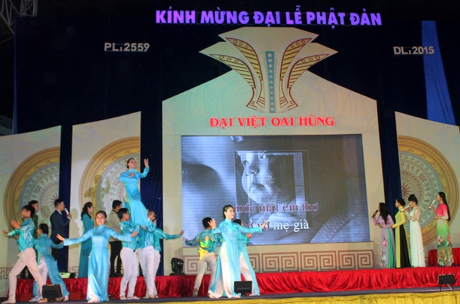 Theo đó, vào đêm 31/05/2015 (nhằm ngày 14/04/năm Ất Mùi), tại Lễ đài Thiền Tôn Phật Quang đã diễn ra một chương trình văn nghệ thật đặc sắc với chủ đề “ĐẠI VIỆT OAI HÙNG”, do các NSƯT như: Nguyễn Phi Hùng, Mai Lan, Thu Trang, Thụy Vân, Dzoãn Minh, Huỳnh Lợi, Lâm Ánh Ngọc, Lan Anh, v.v… biểu diễn, nhằm cúng dường lên Phật, cùng Chư tôn đức và góp vui cho hơn 2 vạn người tham dự đại lễ Phật đản chính thức vào sáng hôm sau.