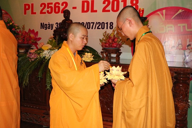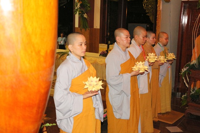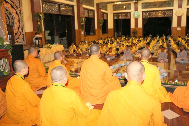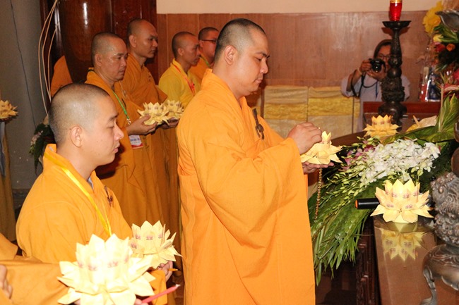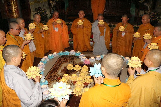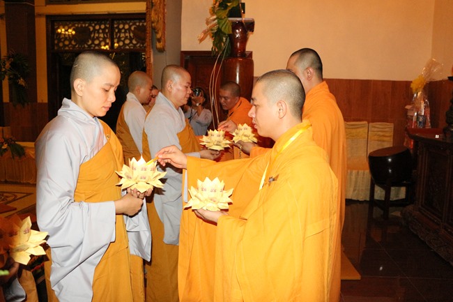 Sau khi Chư Tôn đức niêm hương bạch Phật, đảnh lễ Tam Bảo, những ngọn nến thiêng liêng được Chư Tôn đức tiếp nối ánh sáng từ bàn Phật truyền đến tất cả các khóa sinh.