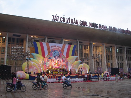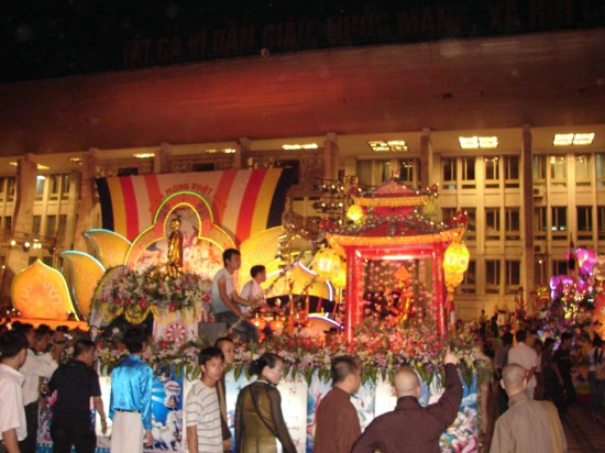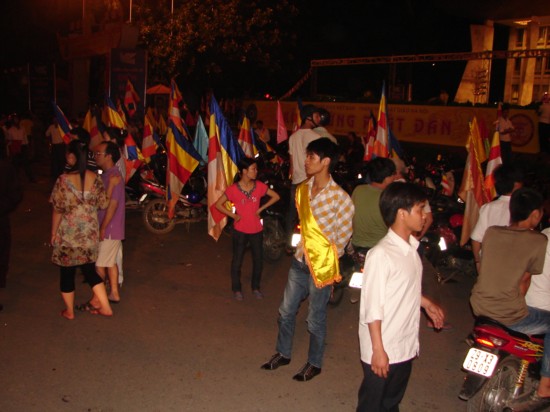Nếu như năm trước, ngay cả trong các Đại hội toàn quốc, trên hệ thống cột cờ chỉ được treo 1, 1 vài lá cờ Phật giáo trong hệ thống cờ đỏ, thì Đại lễ hội Phật đản năm nay, Nhà nước chính thức hoan hỉ để GHPGVN treo 31 lá cờ Phật. Quả là xưa nay chưa từng có.