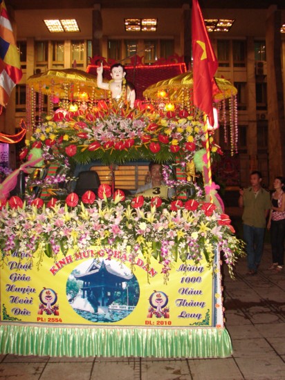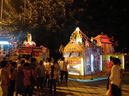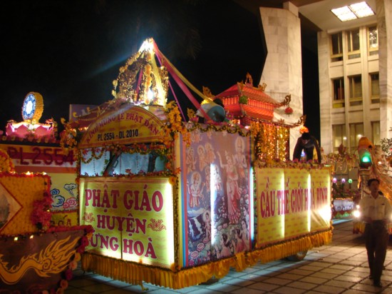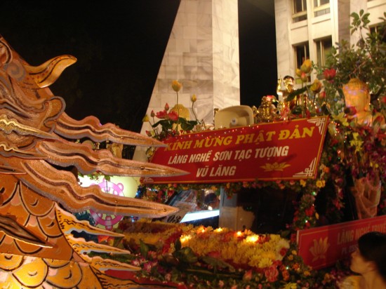 Năm nay, bên cạnh thời pháp của Thượng tọa Thích Bảo Nghiêm và Đêm biểu diễn văn nghệ kính mừng Phật đản của thanh thiếu niên Phật tử thủ đô, khu vực khoảng trường 1/5 rực rỡ khác thường với gần 20 xe hoa Phật đản của các huyện xa. Đây là một nét đẹp và là một điểm nhấn thu hút sự chú ý, quan tâm thưởng lãm của nhiều Phật tử và người dân. Dù sao thì xe hoa buổi đêm nhìn cũng lộng lẫy hơn ban ngày.
