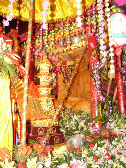 Lễ đài năm nay hoành tráng hơn hẳn mọi năm, có chiều sâu. Với diện tích sân khấu gần 200 m2, phông nền cách điệu lá đề khổng lồ, cao bằng đỉnh Cung Hữu nghị, với diện tích đủ gây ấn tượng 30 x 18m. Nét đặc biệt, phồng nền năm nay in hình Đức Phật đản sinh theo phong cách Mật Tông.
