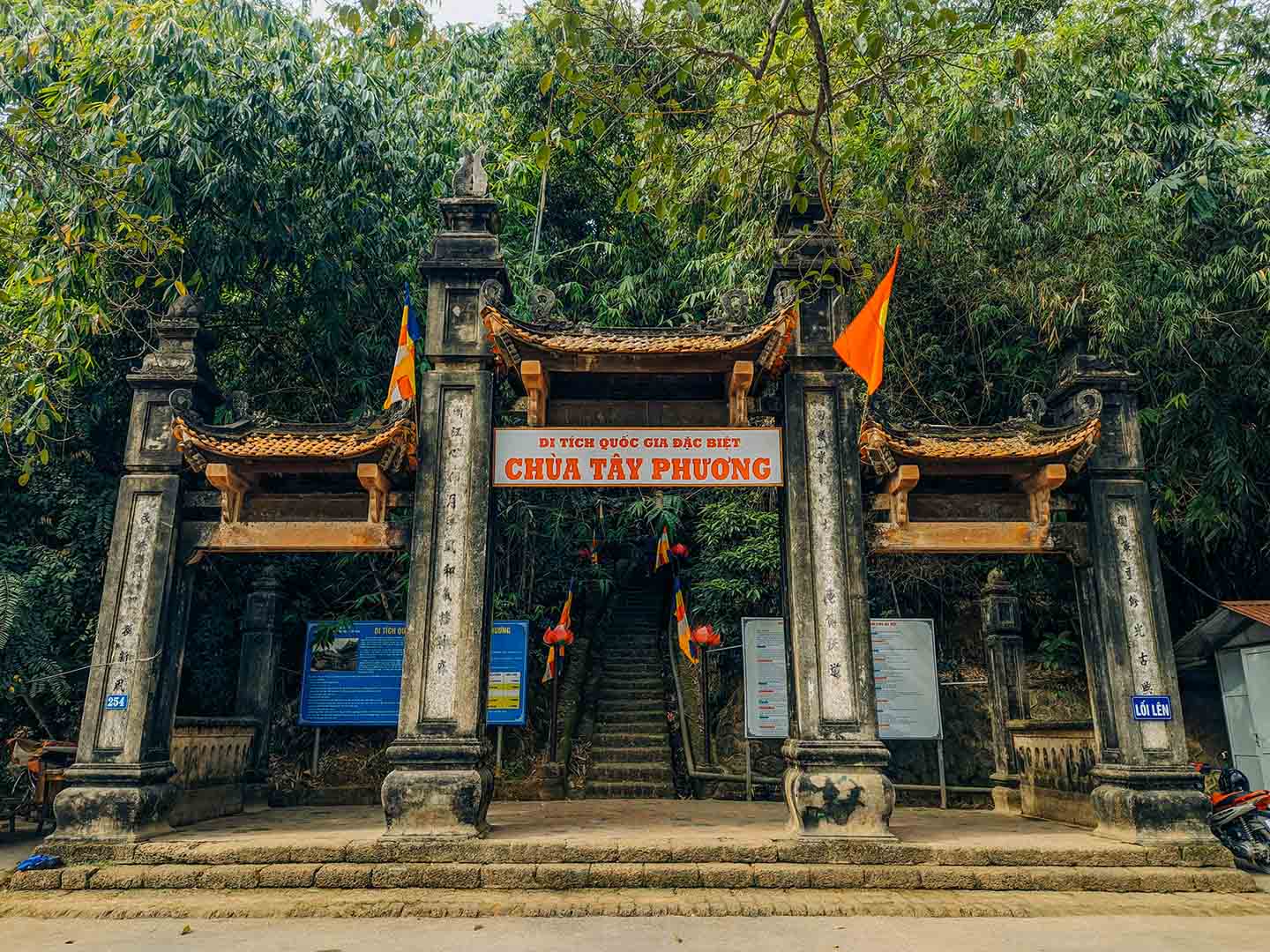 Từ chân núi, du khách sẽ trải qua 239 bậc lát đá ong thì sẽ đến đỉnh núi và cổng chùa.