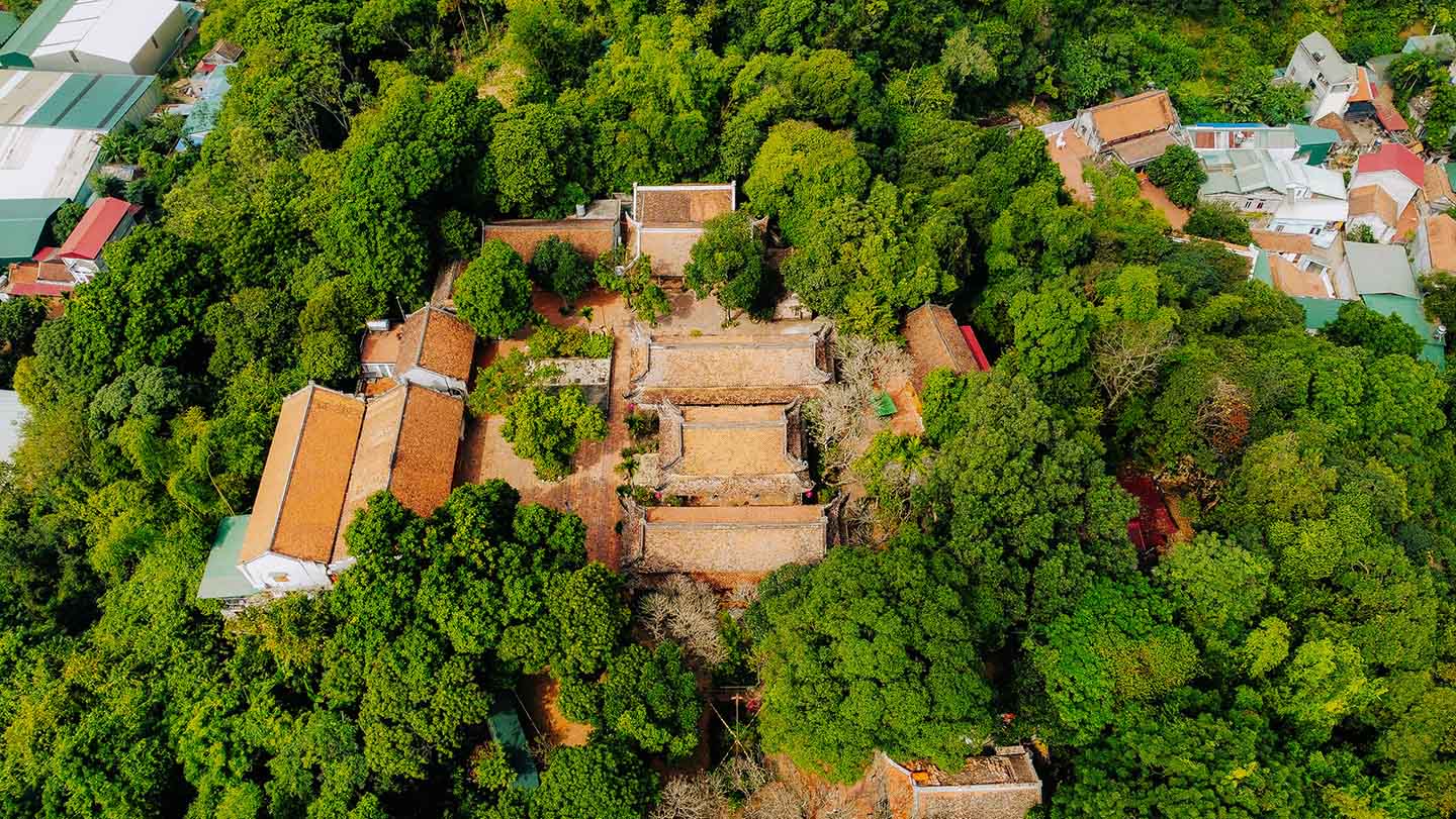 Chùa được xây dựng theo lối kiến trúc kiểu chữ Tam với ba tòa dọc theo sườn núi, dựa vào thế núi từ thấp lên cao thành ba ngôi chùa song song với nhau gồm có chùa: Chùa Hạ, chùa Trung, Chùa Thượng.
