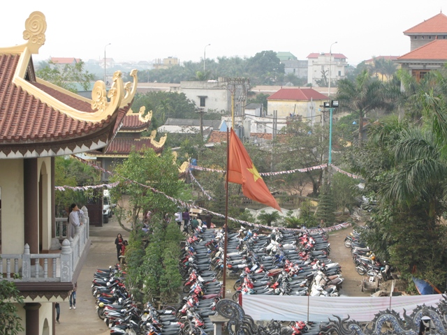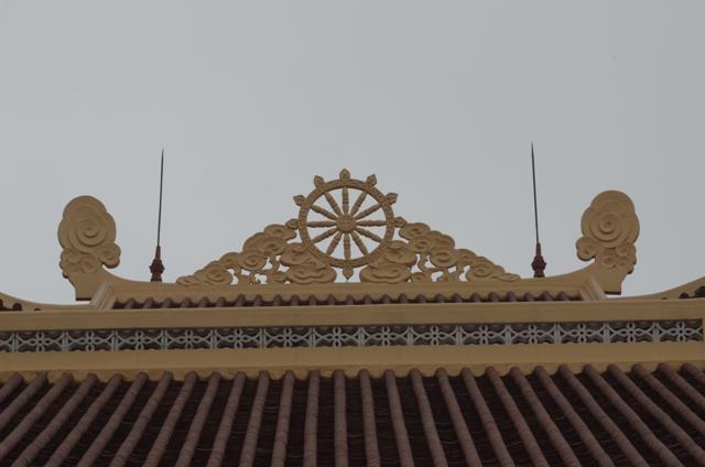 Đang mải mê nhìn ngắm phong cảnh hai bên đường , Tôi bỗng ngạc nhiên thích thú khi nhìn thấy những mái ngói của ngôi Thiền viện uy nghi. Theo bảng chỉ dẫn đây chính là Thiền viện Sùng Phúc thuộc tổ dân phố số 10, phường Cự Khối, quận Long Biên, – bông hoa sen giữa lòng Hà Nội như báo chí đã từng ca ngợi!