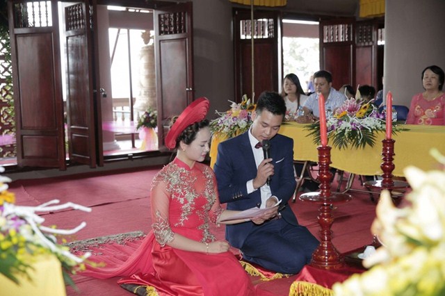 Đây là lễ hằng thuận đầu tiên được diễn ra tại tỉnh Điện Biên. Sau phần nghi lễ đỉnh lễ Tam Bảo, đôi tân lang, tân nương đã phát nguyện trước Tam Bảo là sẽ sống trọn đời yêu thương nhau và luôn luôn làm theo đúng những lời Đức Phật đã dạy. Một nghi thức quan trọng không thể thiếu trong mỗi buổi lễ hằng thuận là nghi lễ, lễ cha mẹ, phu thê giao bái cũng được diễn ra trang trọng. Tiếp đến là nghi thức tân lang, tân nương trao nhẫn cho nhau, dâng trà mời cha mẹ, đốt nến nguyện cầu hạnh phúc cũng được diễn ra trong không khí ấm cúng và xúc động.