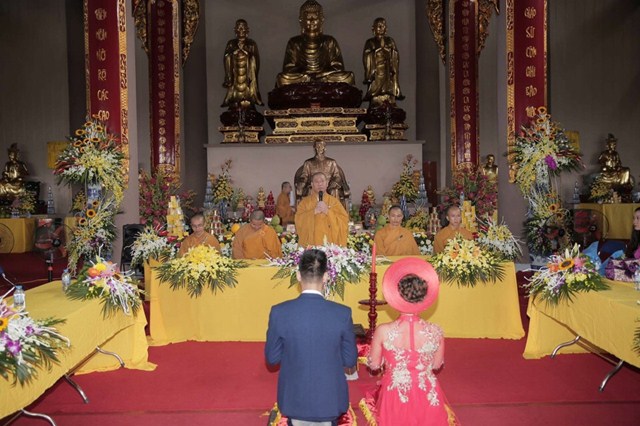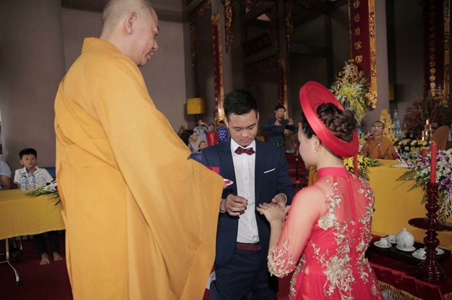 Buổi lễ được cử hành dưới sự quang lâm chứng minh của Đại đức Thích Thanh Quy – Phó trưởng BTS GHPGVN tỉnh Điện Biên cùng chư tăng hạ trường Linh Quang, xã Thanh Nưa huyện Điện Biên tỉnh Điện Biên. Được biết, tân lang Lê Sinh Pháp danh Quang Minh là Phật tử thuần thành, luôn luôn gần gũi thân cận với Tam Bảo. Vào năm 2014, BTS GHPGVN tỉnh Điện Biên được thành lập, Phật tử Lê Sinh PD. Quang Minh được cử làm phó chánh văn phòng BTS tỉnh, chính vì lẽ đó ngày hôm nay BTS tỉnh đã kết hợp cùng gia đình đôi bên tổ chức lễ hằng thuận cho đôi bạn trẻ.