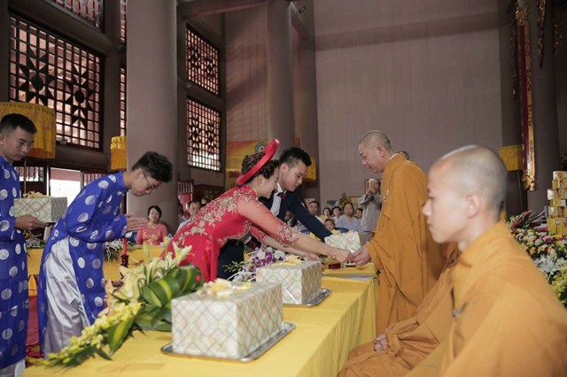 Thay mặt chư tăng hiện tiền, Đại đức Thích Thanh Quy đã ban đạo từ nhắc nhở tân lang, tân nương sống bên nhau giữ gìn hạnh phúc cũng như giữ 5 giới của Phật tử tại gia để có một cuộc sống hôn nhân bền vững. Sau cùng là nghi thức hồi hướng, bế mạc.