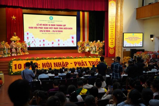 Những ngày này cả nước đang hân hoan chào mừng kỷ niệm 70 năm chiến thắng Điện Biên Phủ, lừng lẫy năm châu, chấn động địa cầu. Phật giáo đồ khắp 5 châu hân hoan kính mừng lần thứ 2648 Đức Phật đản sinh (PL. 2568). Được sự chấp thuận của Hội đồng Trị sự GHPGVN và tỉnh Điện Biên, Ban Trị sự GHPGVN tỉnh Điện Biên tổ chức trọng thể Đại Lễ kỷ niệm 10 năm thành lập GHPGVN tỉnh Điện Biên (25/4/2014 – 25/4/2024). Đây là sự kiện trọng đại của Tăng Ni, tín đồ Phật tử các dân tộc trong tỉnh, là một dấu mốc vàng son đánh dấu hành trình 10 năm hình thành và phát triển của Phật giáo tỉnh nhà, đồng thời thể hiện tinh thần đạo pháp luôn gắn bó keo sơn và đồng hành cùng dân tộc.