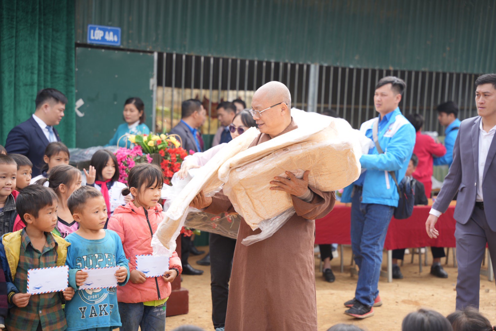 Dịp này, thay mặt cho nhà trường, các thầy cô giáo trong Ban Giám hiệu đã có lời tri ân tới Thượng tọa Thích Tục Khang, Thành đoàn, Hội Liên hiệp Thanh niên thành phố Hải Phòng, các nhà hảo tâm, các mạnh thường quân đã mang hơi ấm tới cho học sinh vùng cao của tỉnh Điện Biên. Hy vọng trong thời gian tới sé tiếp tục nhận được sự quan tâm giúp đỡ của Thành đoàn thành phố, cũng như Ban Phật giáo Quốc tế thành phố Hải Phòng để đồng bào vùng cao vơi bớt khó khăn trong cuộc sống.