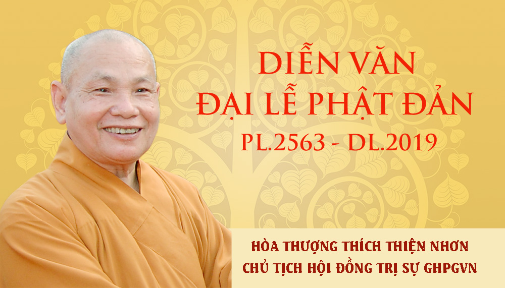 Thay mặt Trung ương Giáo hội Phật giáo Việt Nam, tôi chân thành tri ân Chư tôn đức lãnh đạo Phật giáo thế giới, Pháp chủ, Tăng thống các Giáo hội Tăng già Phật giáo, các dòng truyền thừa và tổ chức Phật giáo từ hơn 110 quốc gia và vùng lãnh thổ đã vân tập về Đại lễ Vesak 2019 tại chùa Tam Chúc, Hà Nam, Việt Nam; tri ân quý vị Nguyên thủ các quốc gia, Liên hợp quốc và các tổ chức quốc tế, các phái đoàn ngoại giao; Lãnh đạo Đảng, Nhà nước, Mặt trận tổ quốc Việt Nam đã tham dự và có thông điệp chào mừng Vesak chung vui cùng với Tăng Ni, Phật tử Giáo hội Phật giáo Việt Nam trong một mùa Phật đản PL. 2563 vô cùng đặc biệt, trang nghiêm và long trọng, góp phần tôn vinh giá trị truyền thống Phật giáo Việt Nam luôn đồng hành cùng dân tộc Việt Nam trong nhiều thiên niên kỷ tiếp tục góp phần xây dựng đất nước Việt Nam giàu đẹp, hòa bình, phát triển bền vững trong hội nhập quốc tế.