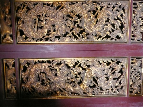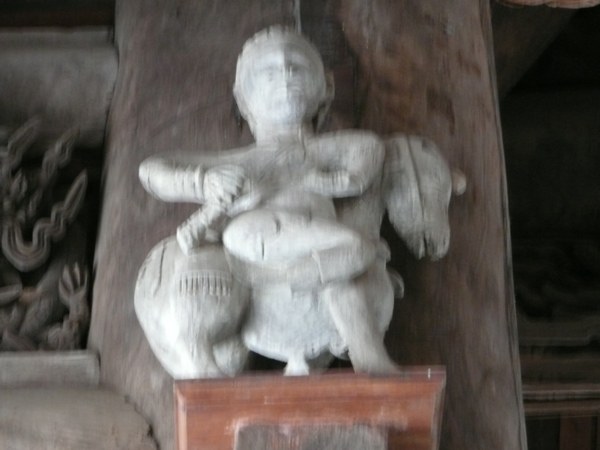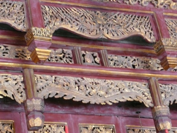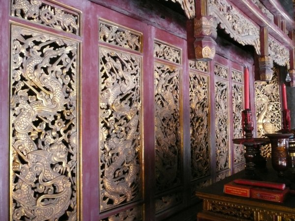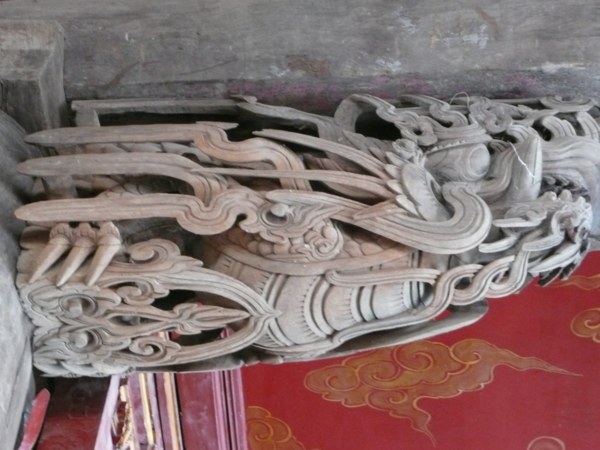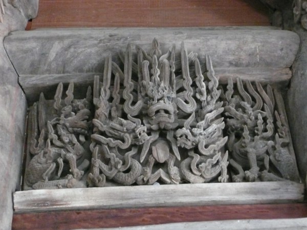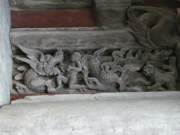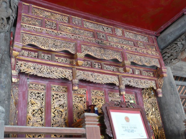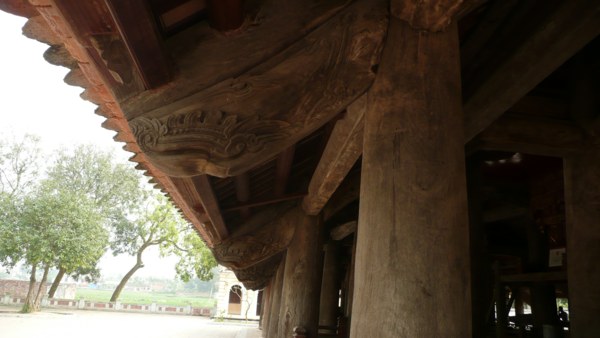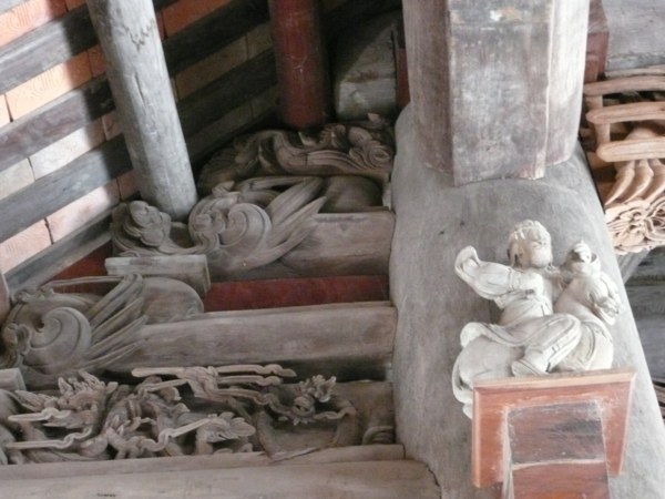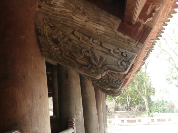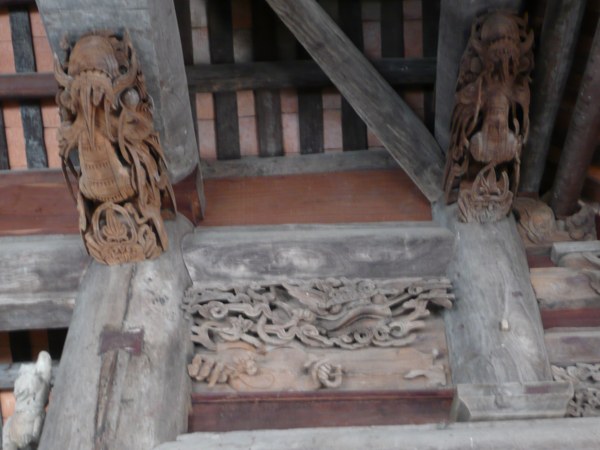 Các tác phẩm được chạm khắc bằng gỗ trong đình cũng hết sức cầu kỳ, tinh xảo và độc đáo. Những đề tài, khung cảnh vốn quen thuộc hàng ngày trong đời sống của người cư dân nông nghiệp như cảnh làm ruộng, chọi gà, người đánh đàn, người cưỡi hổ, người dắt voi, múa hát… được tái hiện hết sức đặc sắc, sống động.