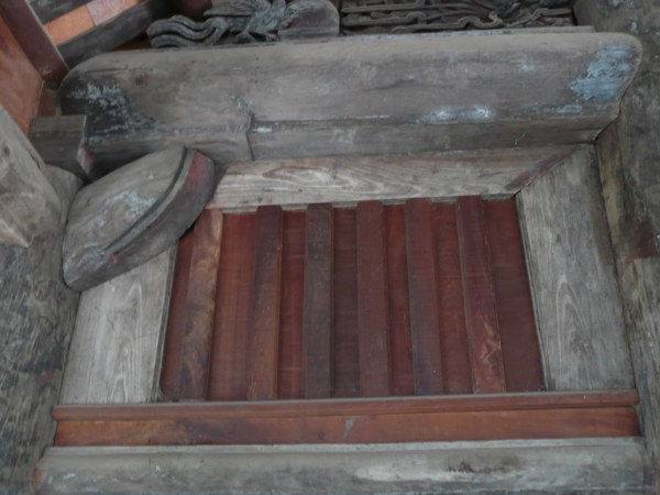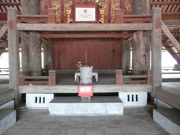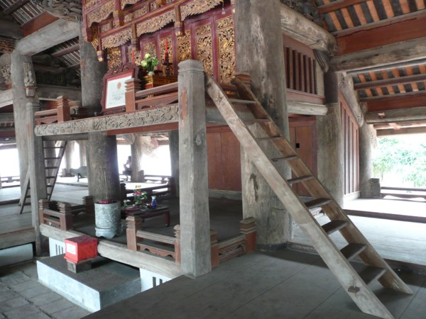 Hậu cung, nơi thờ thành hoàng làng là Nhã Lang, cũng không được làm tách riêng, mà nằm ngay trong gian giữa (chính điện), tại vị trí các cột cái và cột quân phía sau gian trung tâm tòa đại đình, và được quây kín cố định, tạo không khí thần bí và trang nghiêm.