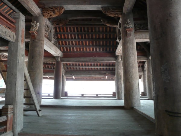 Quá trình trùng tu đã giữ nguyên gần như tất cả phần vỏ các cây cột bị tiêu tâm, và gia cố lõi của chúng chính bằng vật liệu gỗ, đảm bảo giữ nguyên trạng dáng vẻ kiến trúc, màu sắc và chất cảm vật liệu như nguyên bản, mà vẫn tăng cường được sự bền vững của di tích. Viện Bảo tồn di tích đã xử lý hết các loại nấm mốc gây hại cho các cấu kiện gỗ, thay thế toàn bộ số ngói nung bị mục nát trên mái đình bằng loại ngói nung đúng theo phương pháp nung truyền thống bằng rơm và với cùng một chất đất tương đồng với loại ngói cổ có ở mái đình.