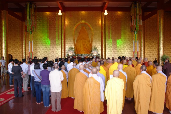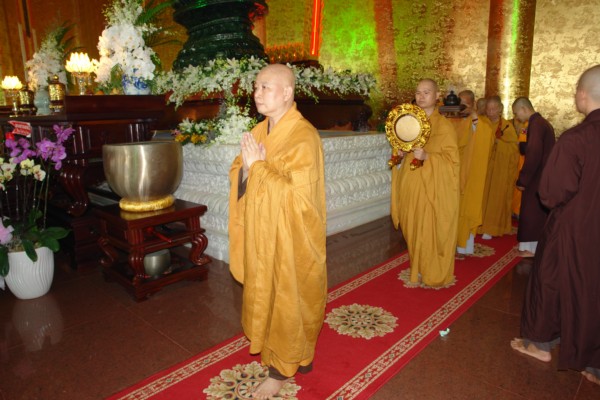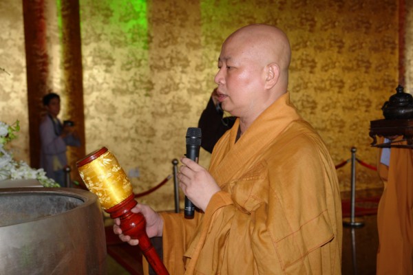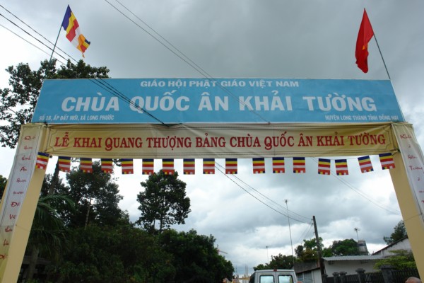 Lễ Thượng Bảng Chùa Quốc Ân Khải Tường – An Vị Tôn Tượng Phật Ngọc Chùa Quốc Ân Khải Tường: Niêm hương tham lễ Tam Bảo; Pháp ngữ sái tịnh đàn tràng Tụng Chú Đại Bi); Đọc kệ khai quang; Thượng bảng chùa.
