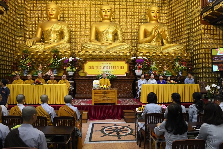 Chứng minh buổi lễ, có TT. Thích Nhật Từ – Ủy viên HĐTS GHPGVN, Trụ trì Chùa Giác Ngộ cùng chư Tôn thiền đức Tăng Ni là đệ tử xuất gia, đệ tử y chỉ Thượng tọa Trụ trì.