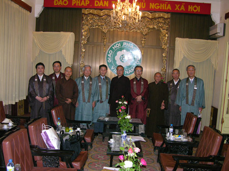 Đón tiếp đoàn có TT. Thích Thanh Nhiễu, Phó tổng thư ký HĐTS, TT. Thích Gia Quang, Phó ban Phật giáo quốc tế. Tại buổi tiếp xúc thân mật, nhị vị Thượng toạ giới thiệu về hệ thống tổ chức của GHPGVN. Đại diện hiệp hội Phật giáo HONGWANJI Nhật Bản, TT. NASUHO bày tỏ lòng cảm kích và  mong muốn có quan hệ gắn bó, hữu nghị, đoàn kêt gắn lâu dài với Phật giáo Việt Nam.