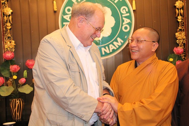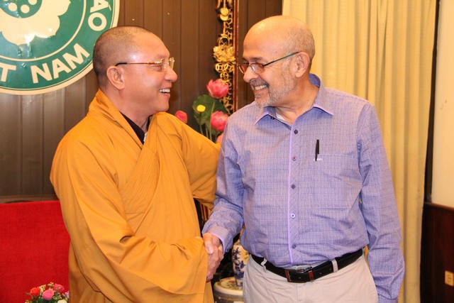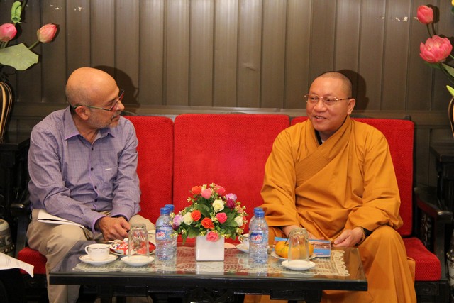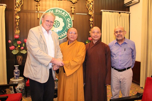 Tiếp đón phái đoàn quốc tế có HT.Thích Gia Quang – Phó Chủ tịch HĐTS kiêm Trưởng Ban Thông tin Truyền thông TW GHPGVN; TT.Thích Thanh Huân – Phó Văn phòng I TW GHPGVN.