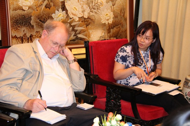 Sáng 10/10/Quý Tỵ (12/11/2013), Phái đoàn khách quốc tế có ông John McAuliff – Giám đốc Điều hành Quỹ Hòa giải và Phát triển của Mỹ và ông Rafael Hernandez – Tổng biên tập tạp chí Temas của Cuba đã có buổi nói chuyện và làm việc với Chư tôn đức tăng tại Văn phòng I – Trụ sở TW GHPGVN – chùa Quán Sứ – Hà Nội.