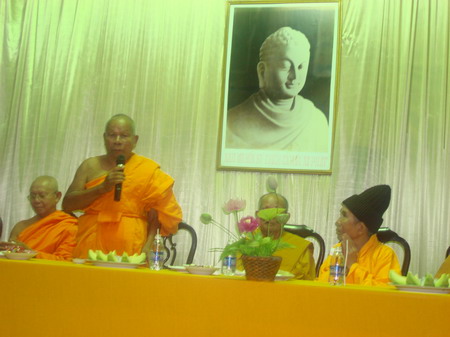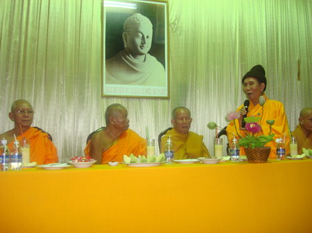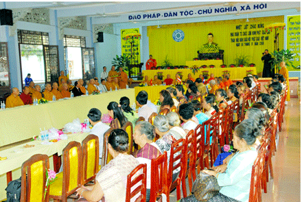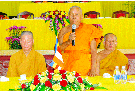 Phái đoàn Lào do Hòa thượng do HT. Boua Kham Salybut – Phó Chủ tịch Liên Minh Phật giáo Lào làm trưởng đoàn, cùng 14 Chư tôn đức giáo phẩm Lào, quý quan chức UBTWMT Lào xây dựng đất nước và gần 100 Phật tử Lào tháp tùng phái đoàn.