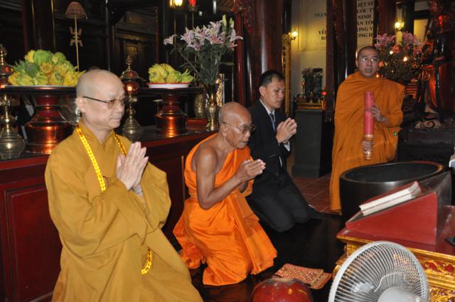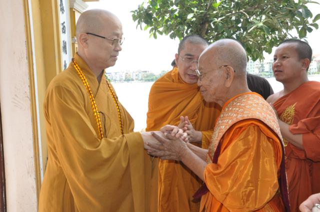 Chiều cùng ngày đoàn đã tới chùa Trấn Quốc.Tại đây HT Thích Thanh Nhã –Ủy viên HĐTS TW GHPGVN – Phó trưởng BTS THPG Hà Nội – Trụ trì chùa Trấn Quốc đã đón tiếp đoàn.