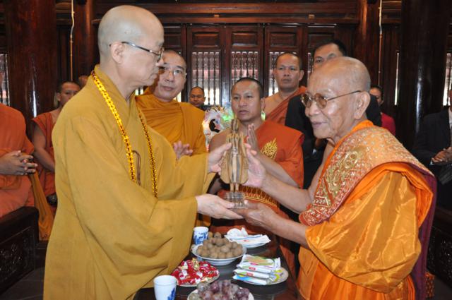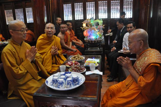 Tại buổi gặp mặt Đại Tăng thống HT.Tep Vong bày tỏ niềm vui mừng và vinh dự là phái đoàn được tới thăm Việt Nam, Đất nước Campuchia trong mọi thời đại luôn dành và gửi tặng những tình cảm chân thành nhất tới dân tộc Việt Nam. Đại Tăng thống mong muốn và cầu chúc Phật giáo Việt Nam ngày càng phát triển bền vững đêm đến sự an vui hòa bình hạnh phúc tới mọi tấng lớp, góp phần xây dựng đất nước Việt Nam ngày càng phồn vinh và giàu đẹp. Giáo hội Phật giáo hai nước sẽ tăng cường quan hệ vì hoà bình, độc lập và phát triển trong thời gian tới.
