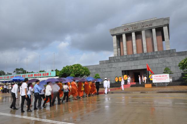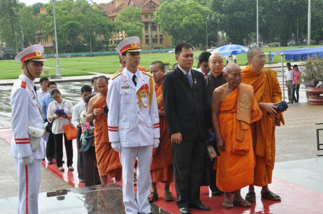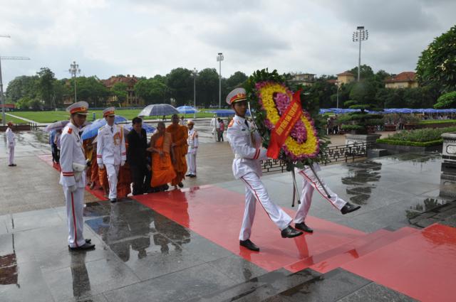 Sau khi đặt vòng hoa và viếng Lăng Bác, đoàn đã đi thăm quan nhà sàn, vườn cây, ao cá, Thăm Bảo tàng Hồ Chí Minh và lễ Phật tại chùa Một Cột.