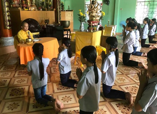Chiều ngày 17-6-2018 (4-4-Ất Mậu Tuất), Phật tử trẻ thuộc GĐPT chùa Viên Minh (xã Quế Lộc, huyện Nông Sơn, tỉnh Quảng Nam) đã phát nguyện quy y Tam Bảo, thọ trì ngũ giới – chính thức trở thành đệ tử tại gia của đức Phật.