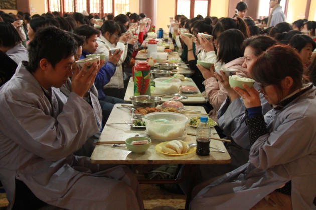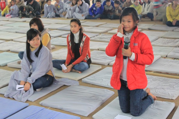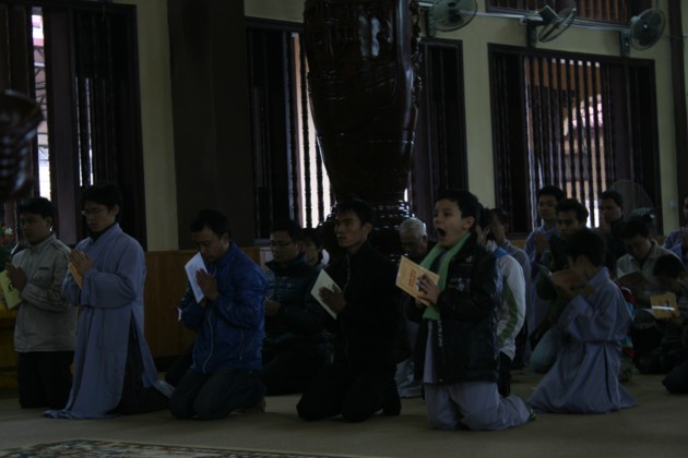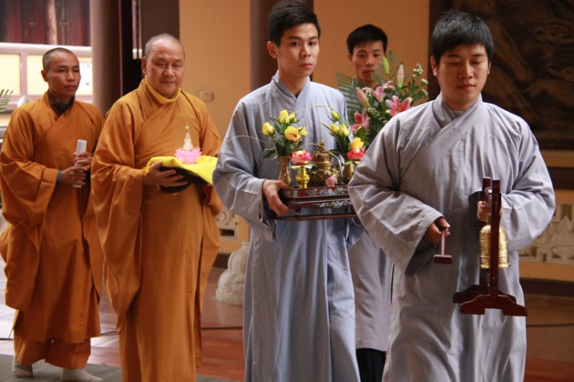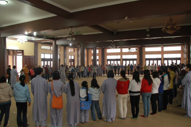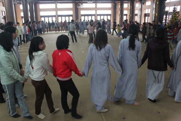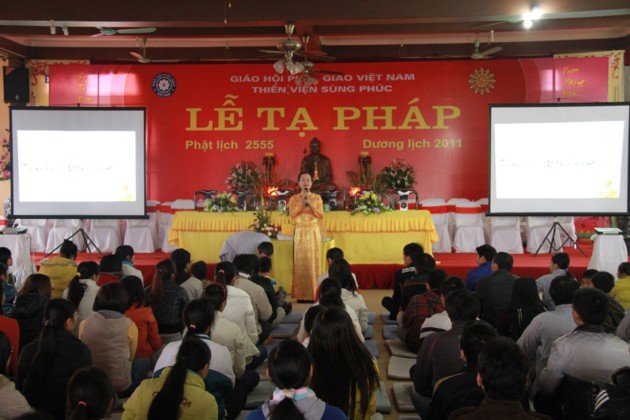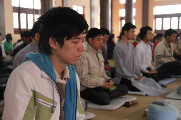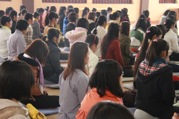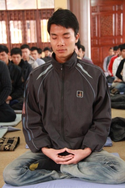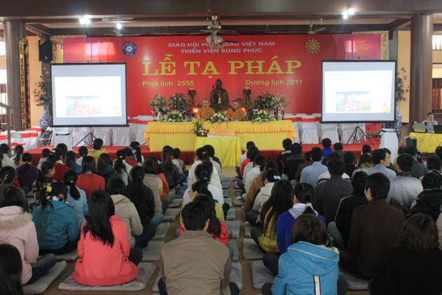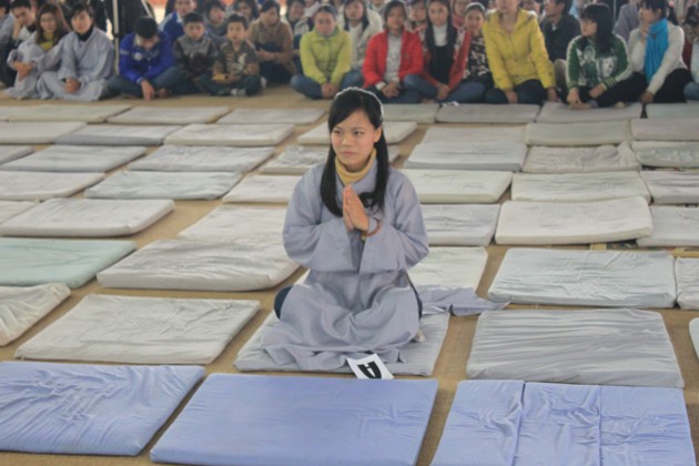 Thời khoá tu tập được bắt đầu vào 7h30 với nghi thức tụng sám hối sáu căn và tụng giới. Sau nghi lễ sám hối, ĐĐ. Thích Trúc Thái Phước đã hướng dẫn các thanh niên phật tử cùng hơn 100 bạn sinh viên đến từ trường ĐH Khoa học xã hội & nhân văn cách tọa thiền. Vào thời khóa nghe pháp, các bạn được ĐĐ. Thích Trúc Thông Tánh – người sáng lập đoàn giảng về Thiền tông và tông chỉ của thiền phái Trúc Lâm Yên Tử.
