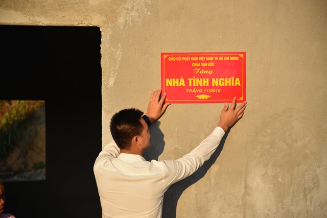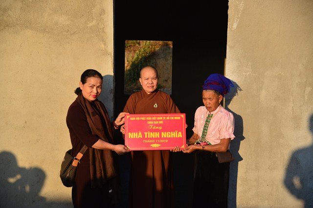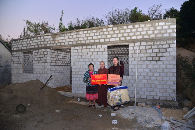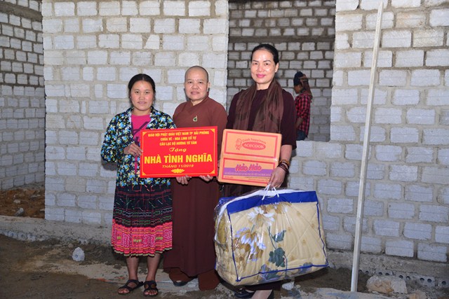 Ngoài ra, đoàn còn đại diện trao tặng 3 căn nhà tình nghĩa do chùa Vạn Đức ( TP. HCM), CLB Hương Từ Tâm ( Hải Phòng) và Cty TNHH Vận Tải Đông Nam Á ( Hải Phòng) ủng hộ cho 3 gia đình có hoàn cảnh khó khăn đang sinh sống tại xã Tà Lèng, huyện Điện Biên Đông, tỉnh Điện Biên, với tổng số tiền từ thiện bao gồm 492 phần quà cho học sinh và hỗ trợ xây dựng 3 căn nhà tình nghĩa là: 246.300.000 đồng.