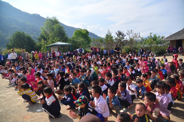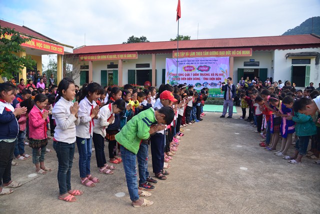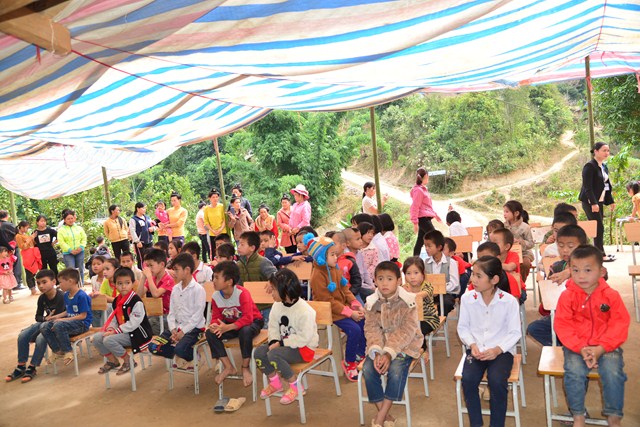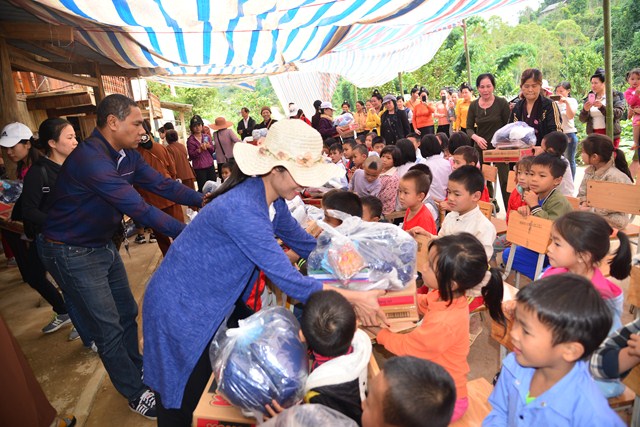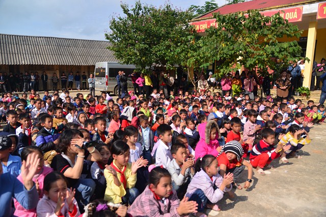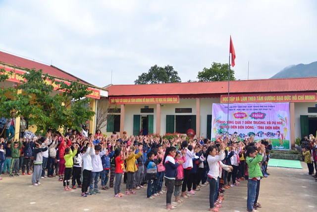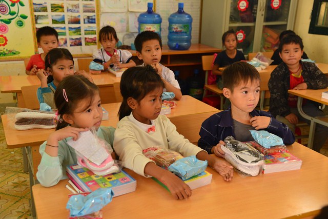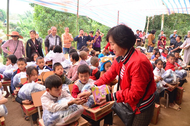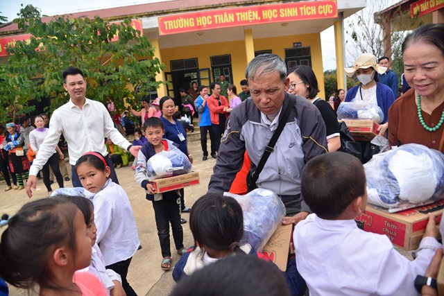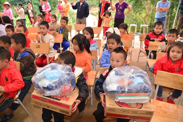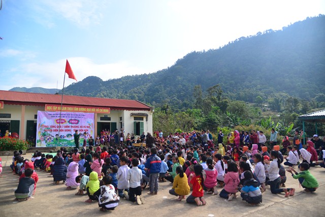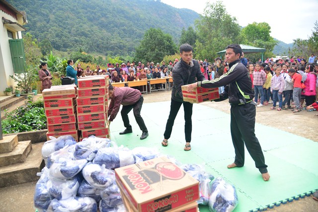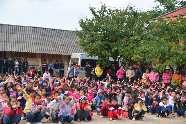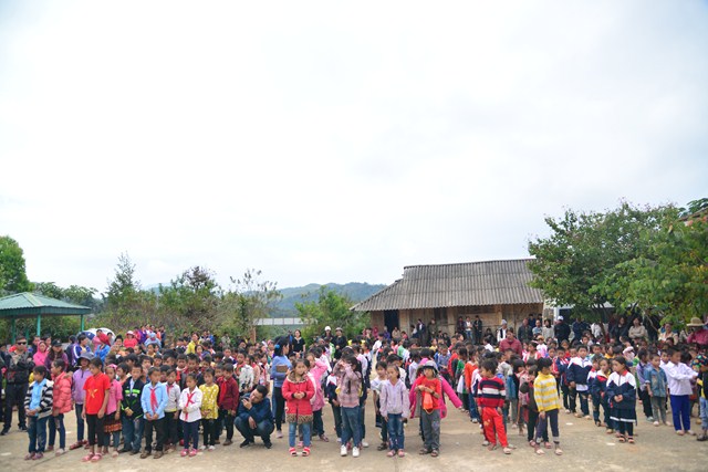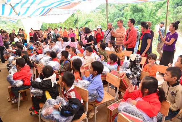 Tại điểm trường Háng Trợ, điểm trường Huổi Tao C và điểm trường Hoàng Văn Nô đoàn đã trao tổng cộng 492 phần quà cho các em học sinh tiểu học bao gồm 1 thùng mỳ, 1 chiếc áo rét, 1 đôi dép ( giày), vở ô ly, bút bi, bánh nướng, màn tuyn…Mỗi phần quà trị giá khoảng 250 ngàn đồng. Bên cạnh đó, đoàn cũng trao thêm 10 triệu đồng cho cô: Lò Thị Mai – Phó hiệu trưởng, đại diện Ban giám hiệu điểm trường Háng Trợ để mua âm ly, loa đài phục vụ cho công tác giảng dạy, sinh hoạt tại trường.