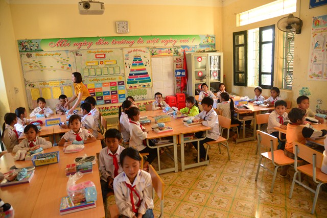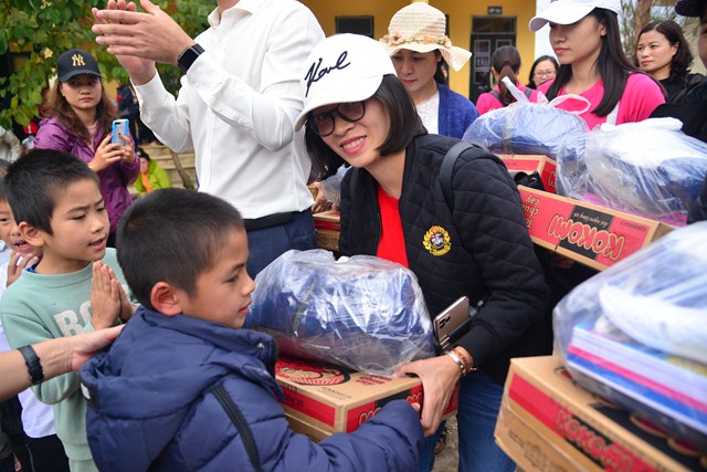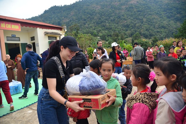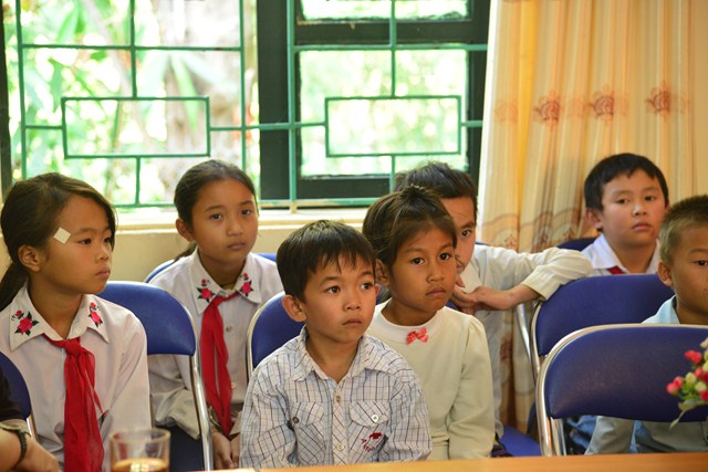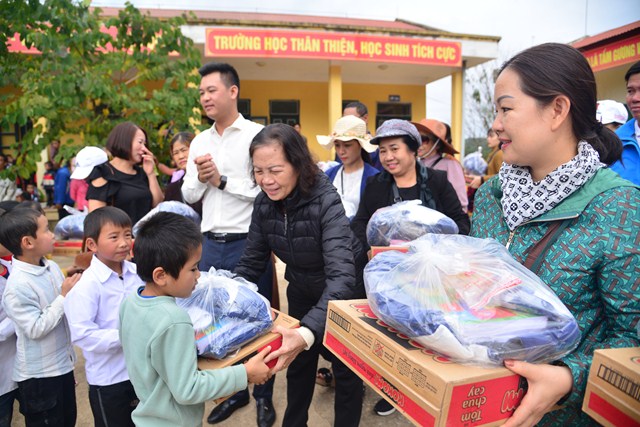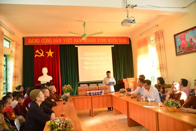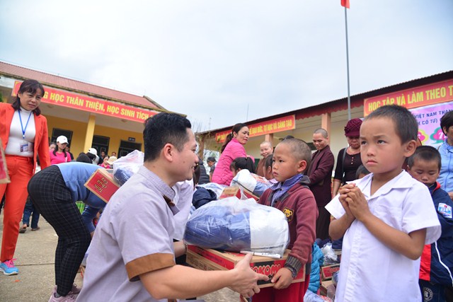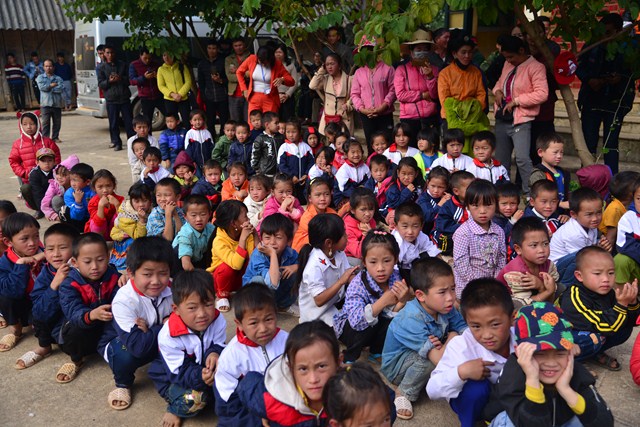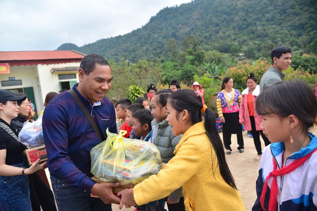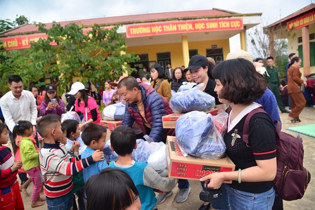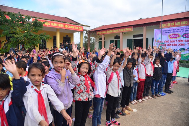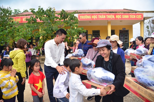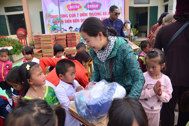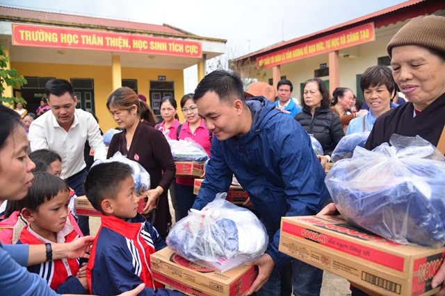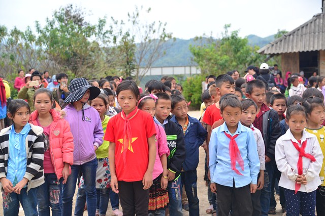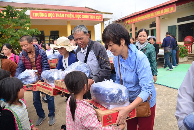 Tại điểm trường Háng Trợ, điểm trường Huổi Tao C và điểm trường Hoàng Văn Nô đoàn đã trao tổng cộng 492 phần quà cho các em học sinh tiểu học bao gồm 1 thùng mỳ, 1 chiếc áo rét, 1 đôi dép ( giày), vở ô ly, bút bi, bánh nướng, màn tuyn…Mỗi phần quà trị giá khoảng 250 ngàn đồng. Bên cạnh đó, đoàn cũng trao thêm 10 triệu đồng cho cô: Lò Thị Mai – Phó hiệu trưởng, đại diện Ban giám hiệu điểm trường Háng Trợ để mua âm ly, loa đài phục vụ cho công tác giảng dạy, sinh hoạt tại trường.