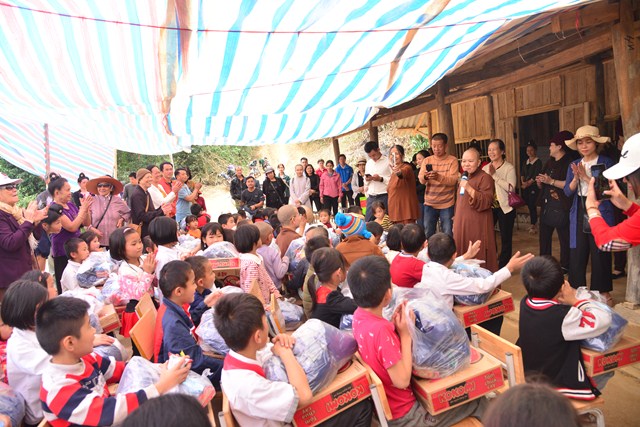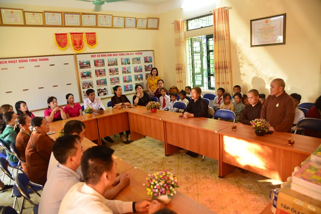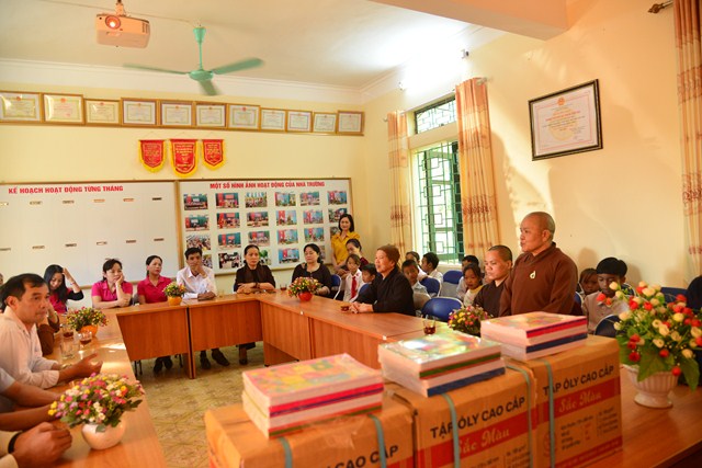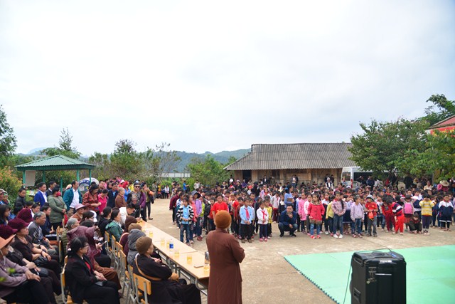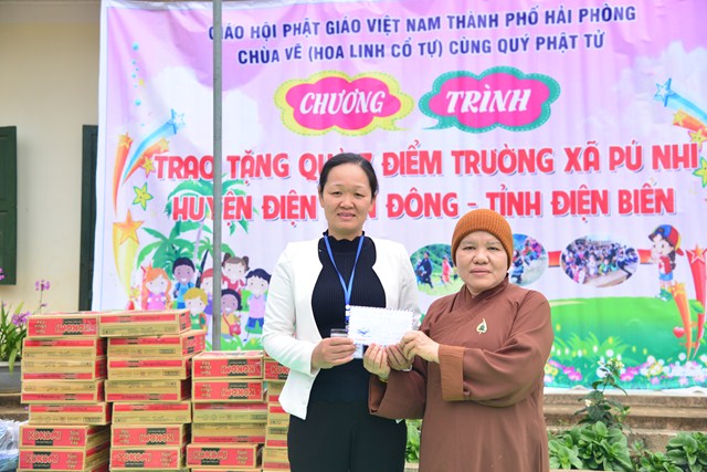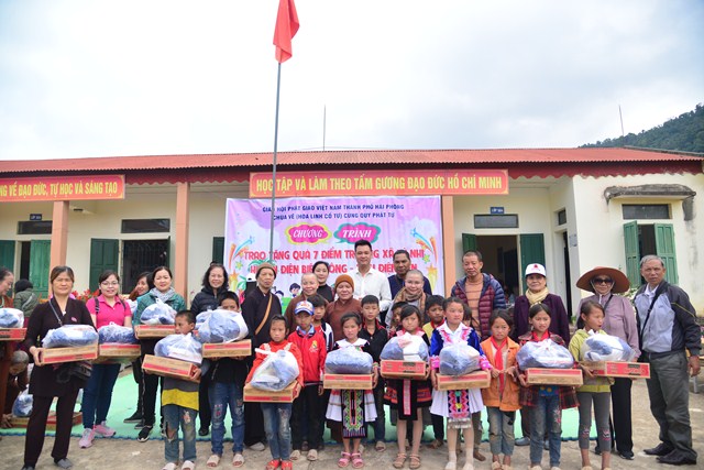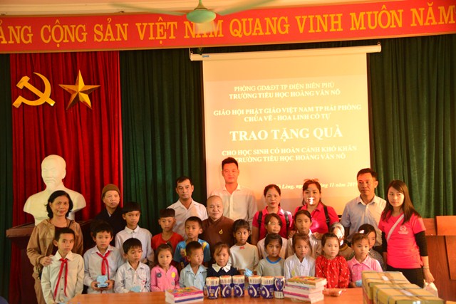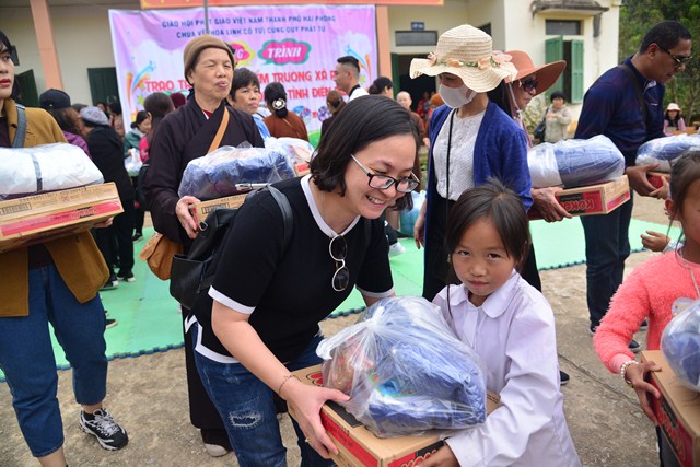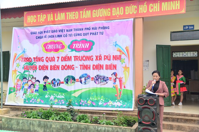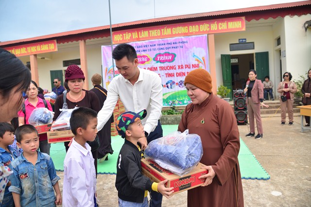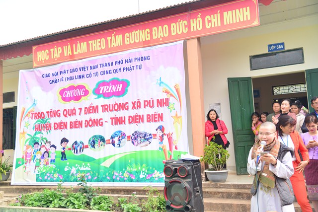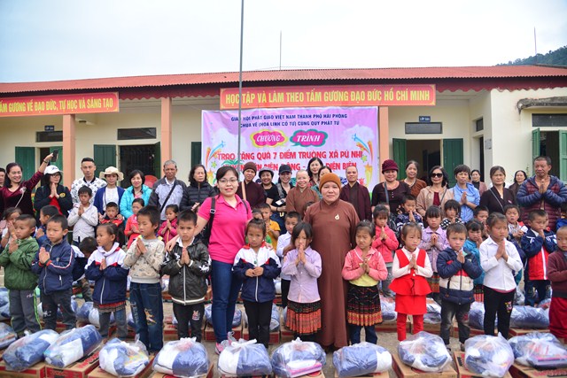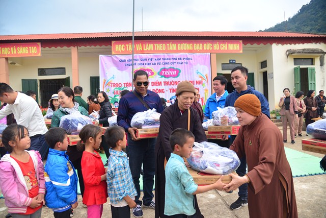 Nhân dịp này, Ni sư Thích Tâm Chính – Trưởng Ban từ thiện xã hội GHPGVN thành phố Hải Phòng đã có lời sách tấn, động viên thầy cô giáo, động viên các em học sinh cố gắng bám trường. bám lớp, siêng năng học tập, nghe lời thầy cô, nghe lời cha mẹ, sau này trưởng thành sẽ mang những kiến thức đã học được về để xây dựng quê hương ngày càng giàu mạnh. Những món quà này tuy nhỏ nhưng đó là tình cảm, sự quan tâm của Phật giáo đối với đời sống đồng bào vùng cao.