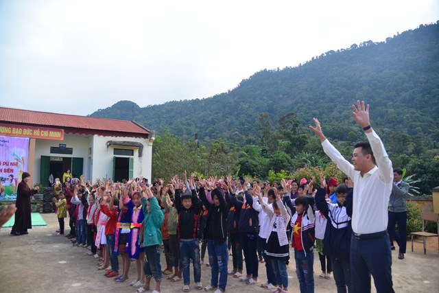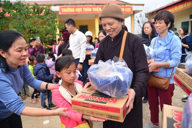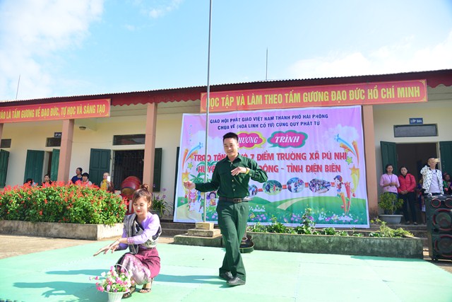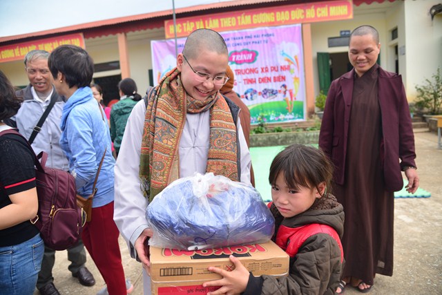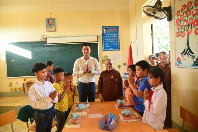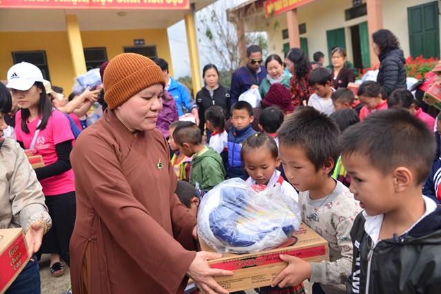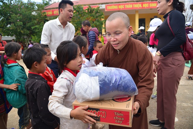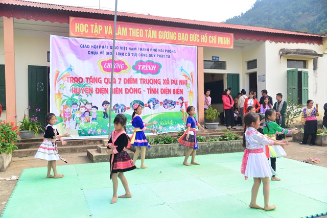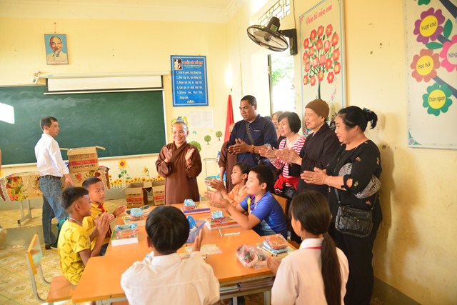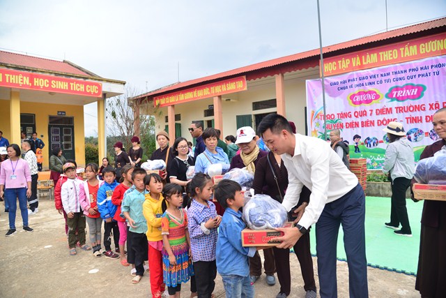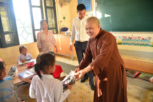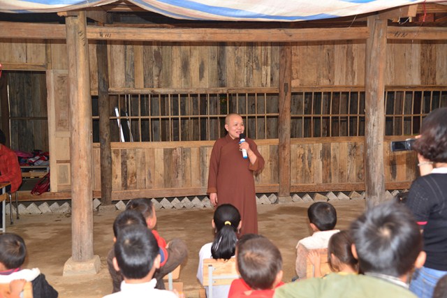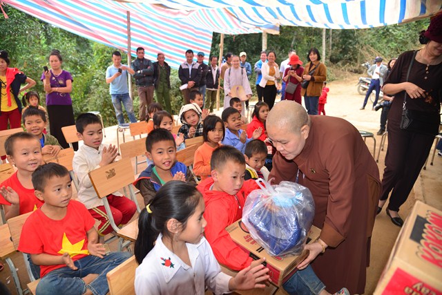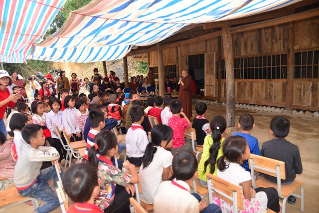 Nhân dịp này, Ni sư Thích Tâm Chính – Trưởng Ban từ thiện xã hội GHPGVN thành phố Hải Phòng đã có lời sách tấn, động viên thầy cô giáo, động viên các em học sinh cố gắng bám trường. bám lớp, siêng năng học tập, nghe lời thầy cô, nghe lời cha mẹ, sau này trưởng thành sẽ mang những kiến thức đã học được về để xây dựng quê hương ngày càng giàu mạnh. Những món quà này tuy nhỏ nhưng đó là tình cảm, sự quan tâm của Phật giáo đối với đời sống đồng bào vùng cao.