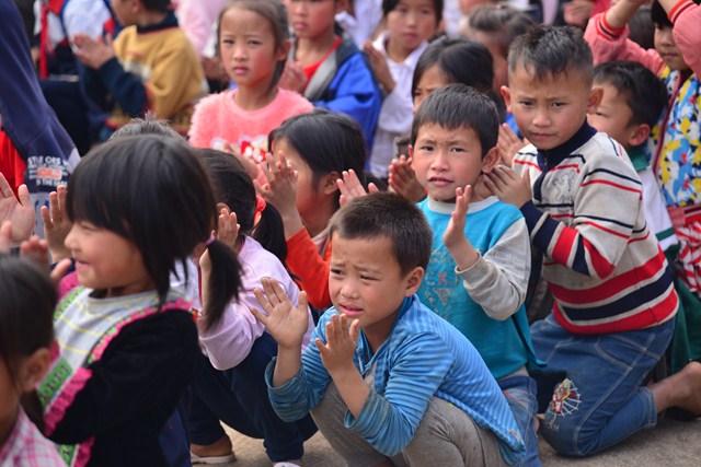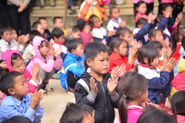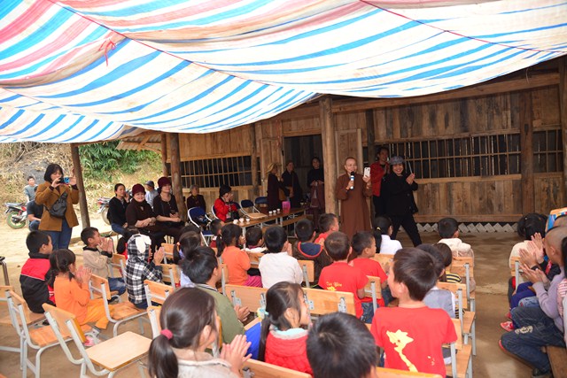 Đoàn từ thiện chùa Vẽ trao quà tại điểm trường Háng Trợ