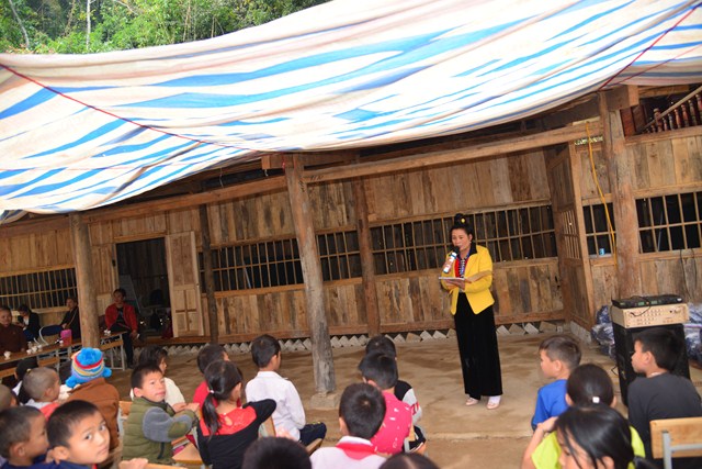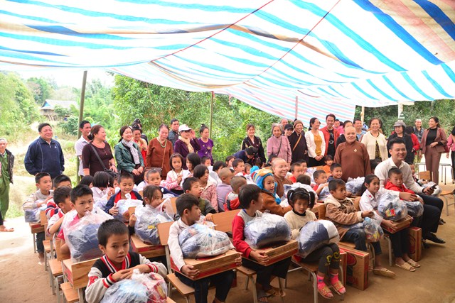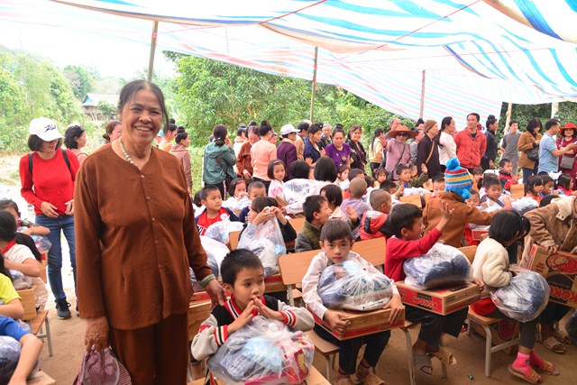 Đoàn từ thiện chùa Vẽ trao quà tại điểm trường Huổi Tao C