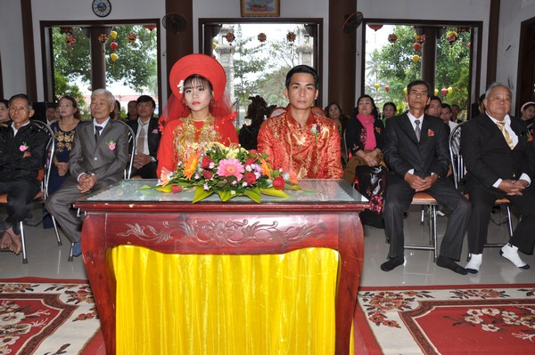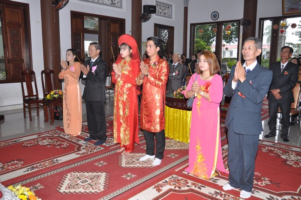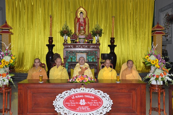 Buổi lễ đặt dưới sự chứng minh của TT.Thích Phước Hưng, trụ trì chùa An Thái; ĐĐ.Thích Tánh Thông, trụ trì chùa Giác Nguyên, cùng Chư tôn đức Tăng, Ni trụ trì các chùa lân cận; đại diện 2 họ nhà trai, nhà gái, bạn bè xa gần tham dự.